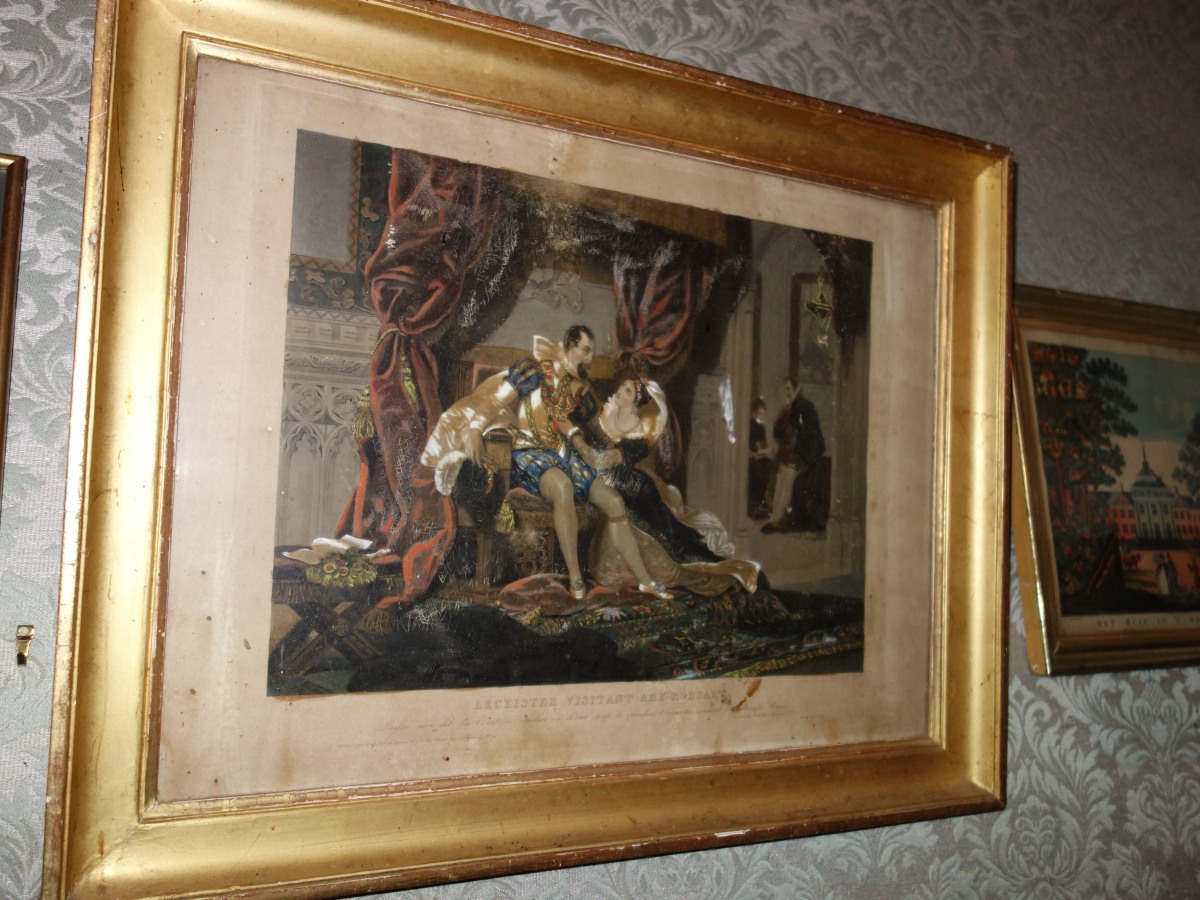 JOINT: CADRES dont Leicester visitant Amy Robsart, gravure rehaussée en couleur (Encadrée: Haut. 51 Larg. 68 cm).