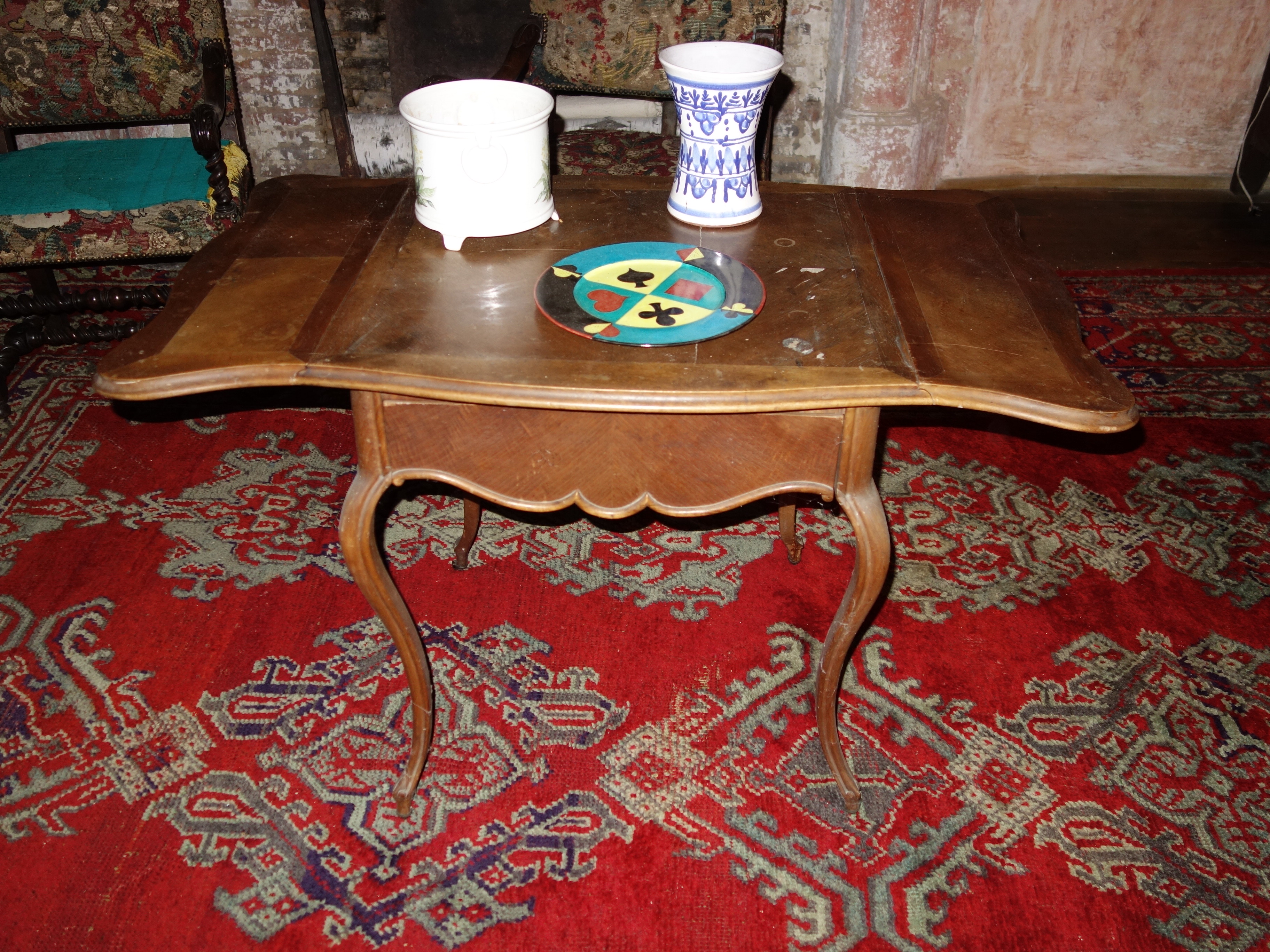 TABLE À VOLETS en noyer et placage de noyer de style Louis XV.