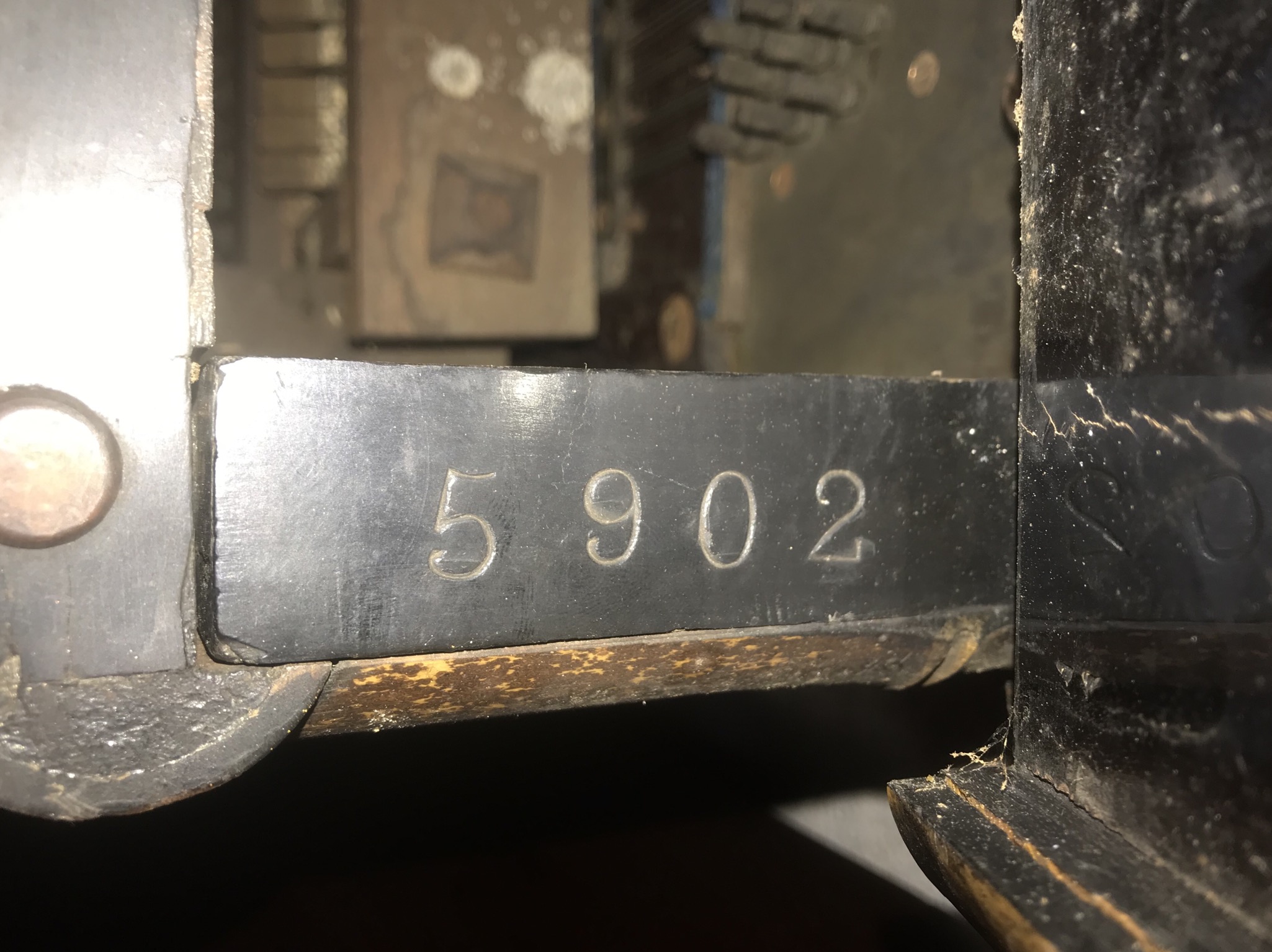 Cadre en métal dont les montant de bois sont numérotés "5902".