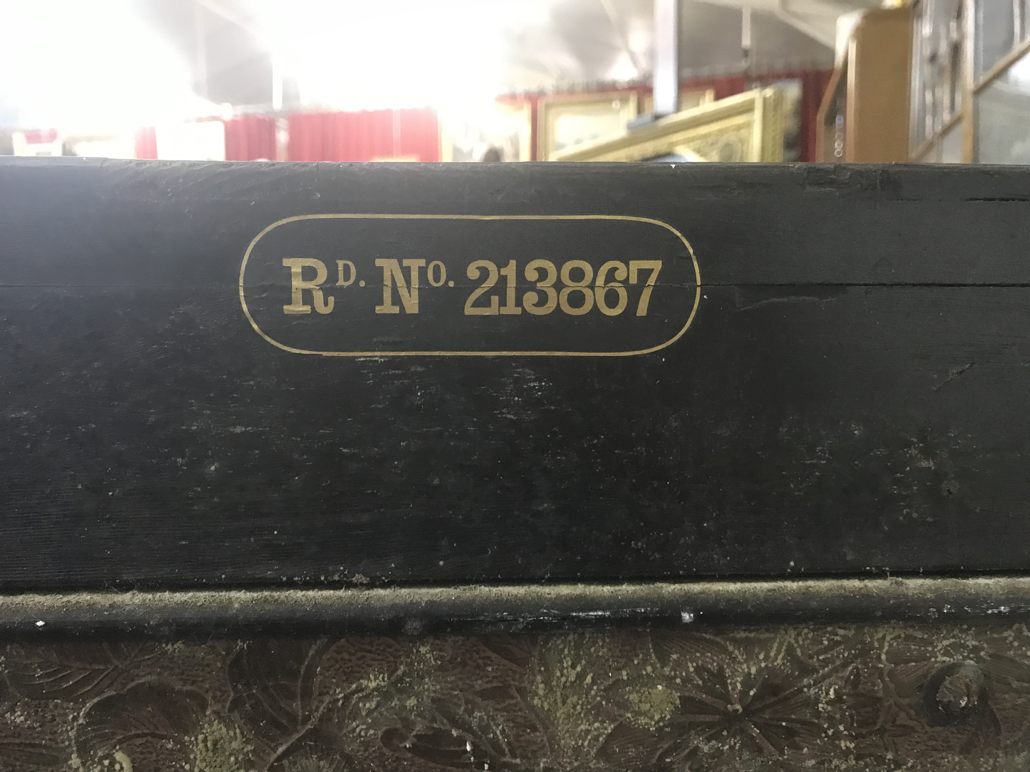 Le dos en toile gaufrée portant une inscription: "Rd N° 213867". Le nom du facteur du piano effacé.