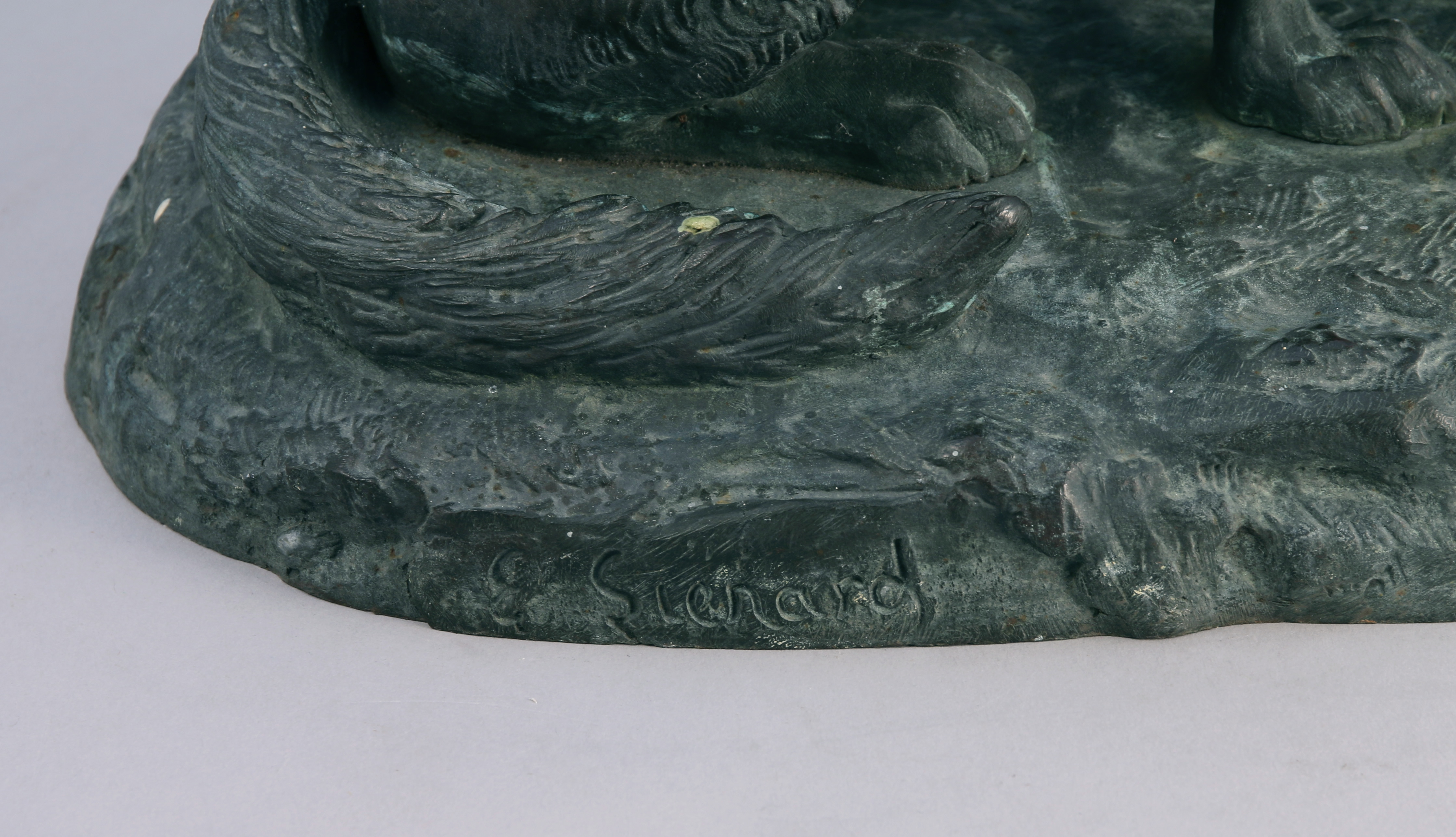 Émile Désiré LIENARD (1842-?)Berger de Picardie assis.  Bronze patiné...