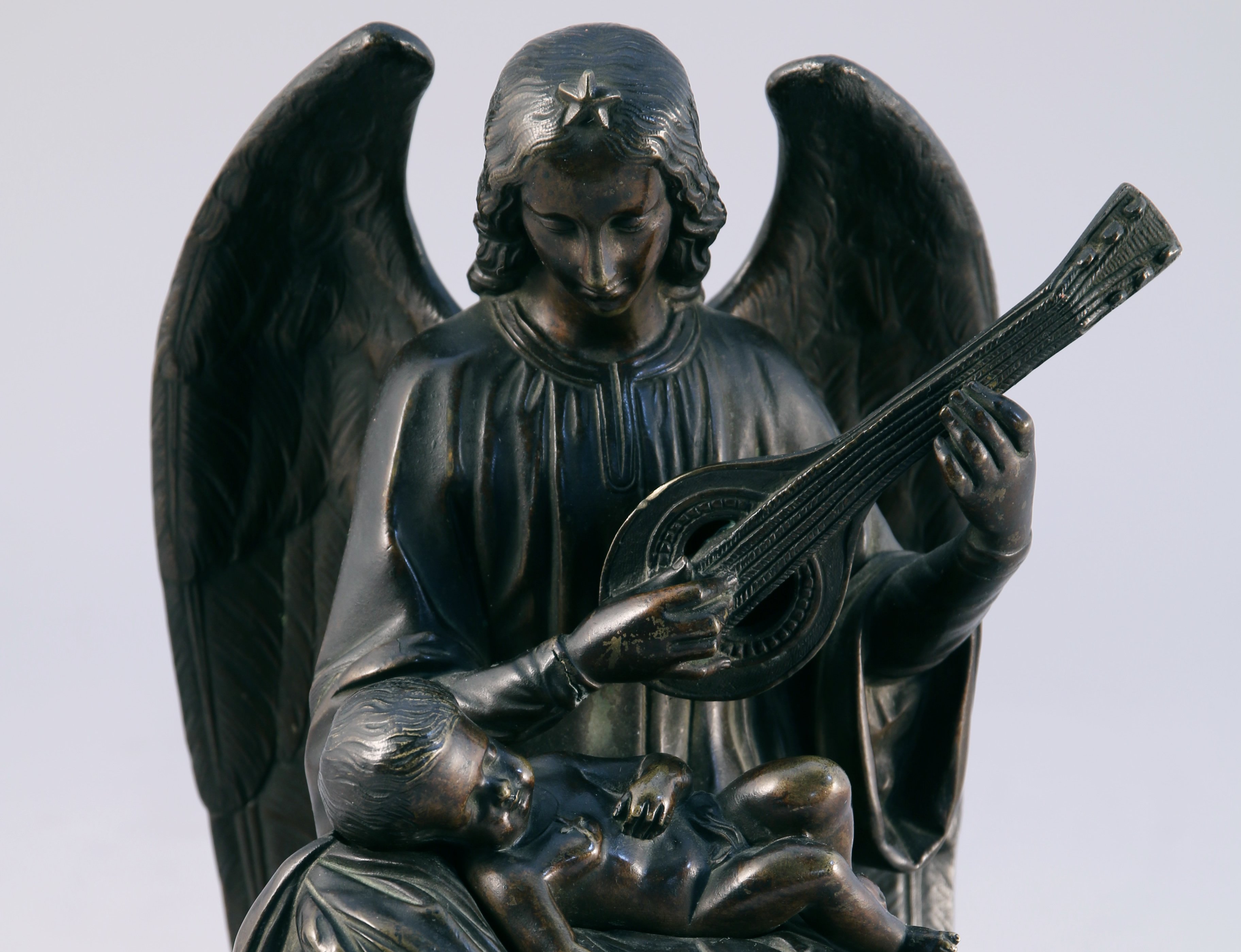 James Pradier exécuta cette oeuvre afin de placer symboliquement sous la protection d'un ange gardien les Enfants de France (les enfants du duc d'Orléans, fils de Louis-Philippe). Notre ange-gardien au luth est le protecteur du comte d'Eu, né en 1842.