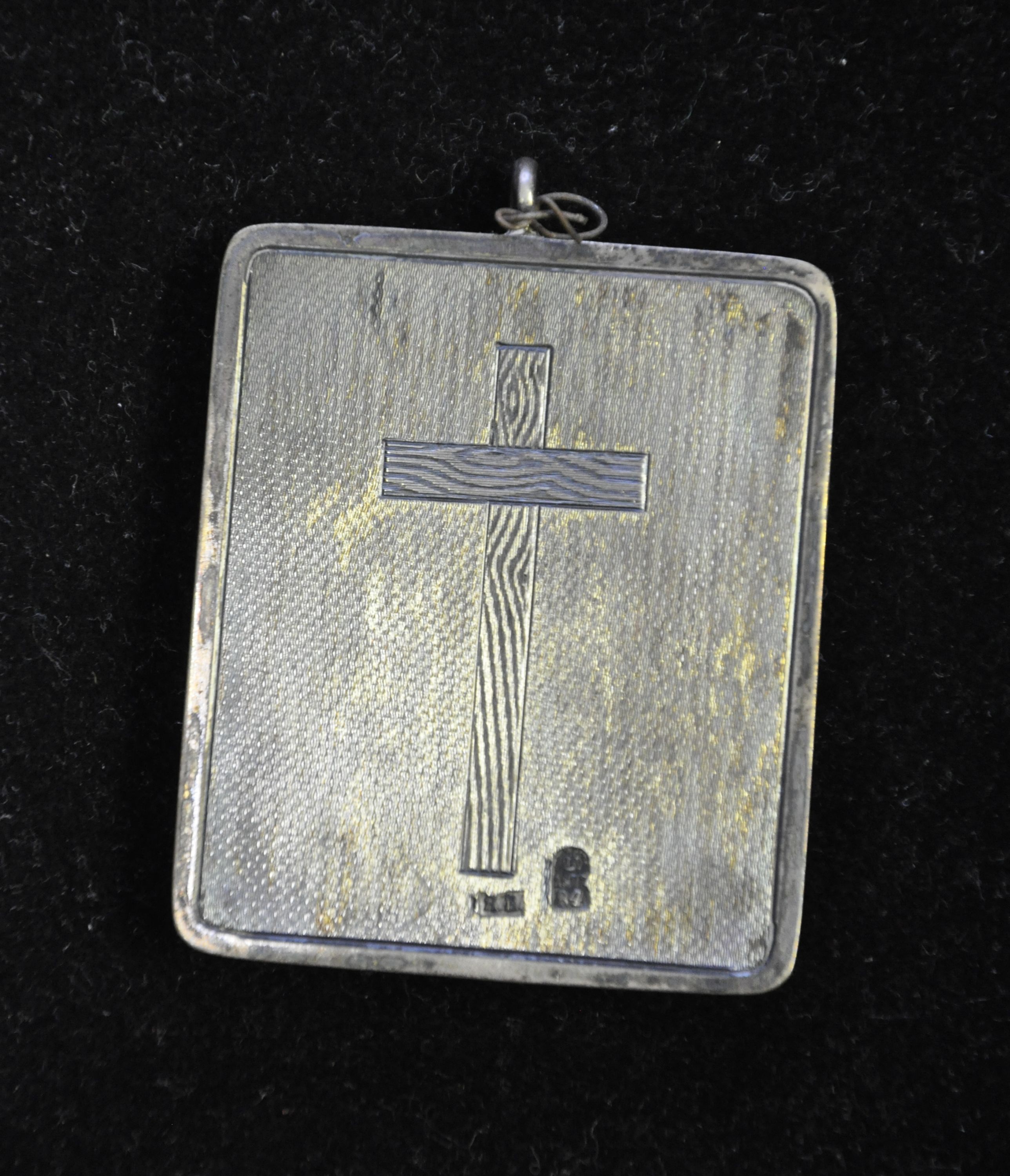 peinte sur nacre (en partie effacé) monture décor rayons de lumière. Au dos croix latine sur fond guilloché.
