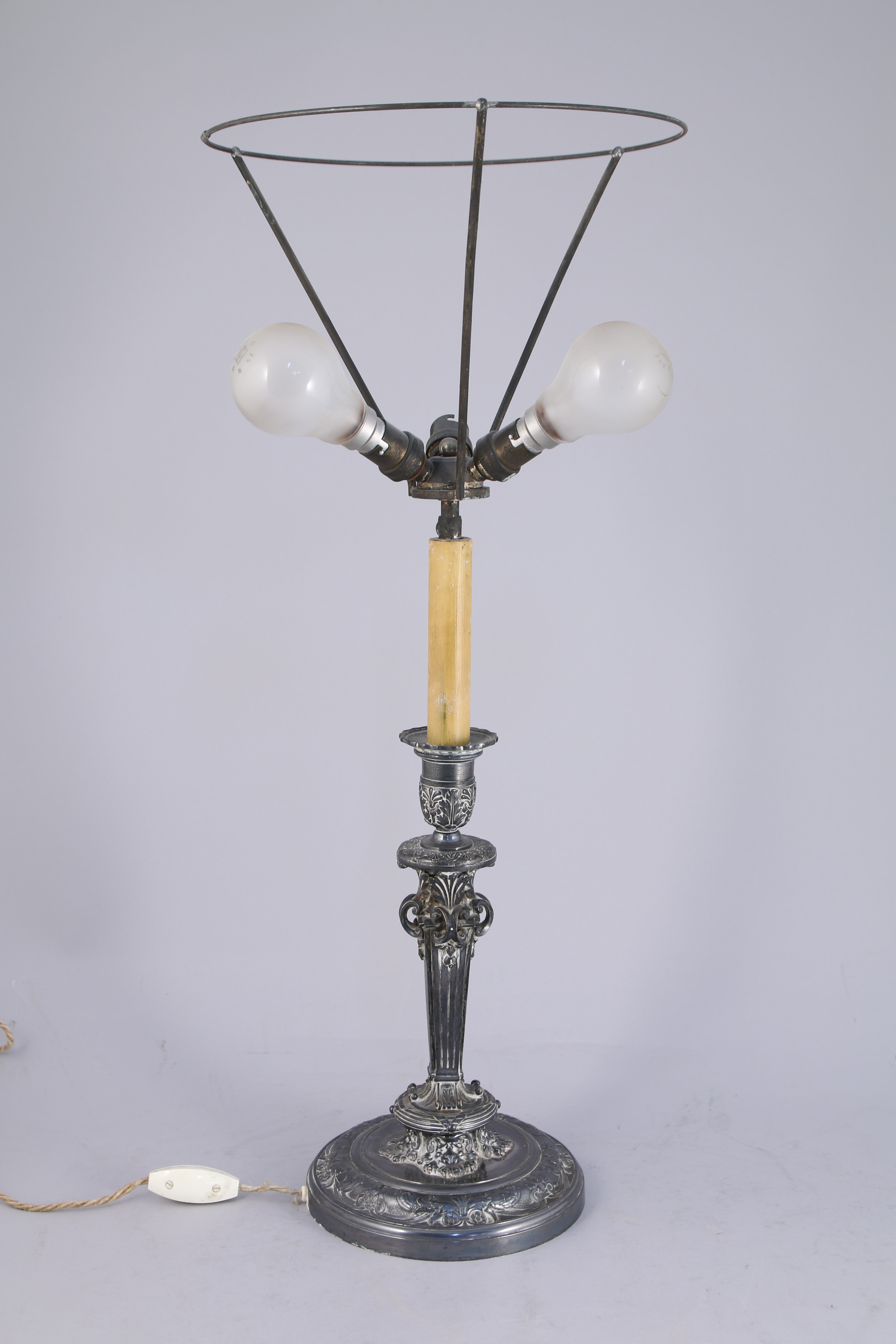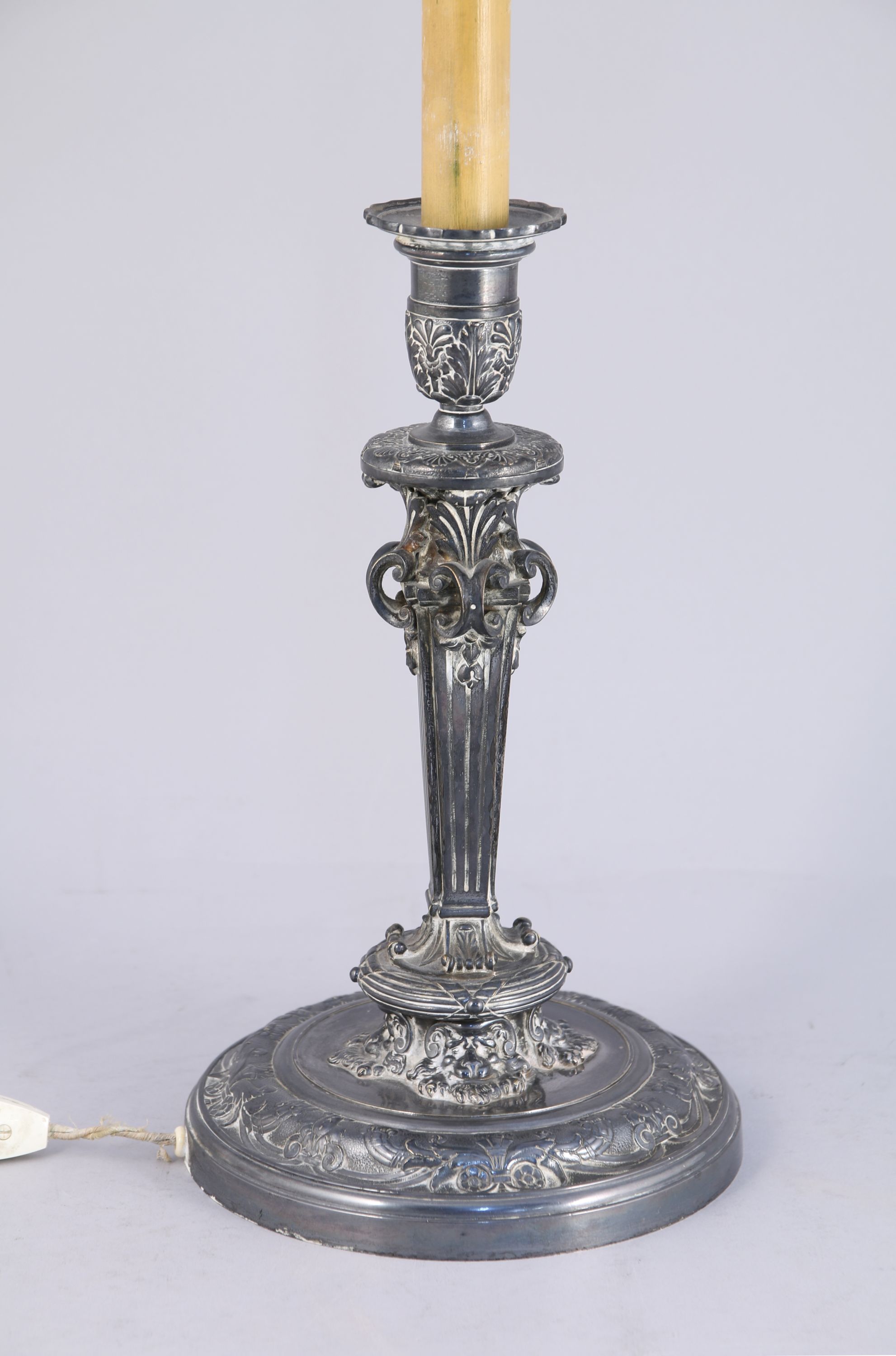 Haut. (du flambeau) 29, Diam. 17 cm (usures, percé pour lélectricité).