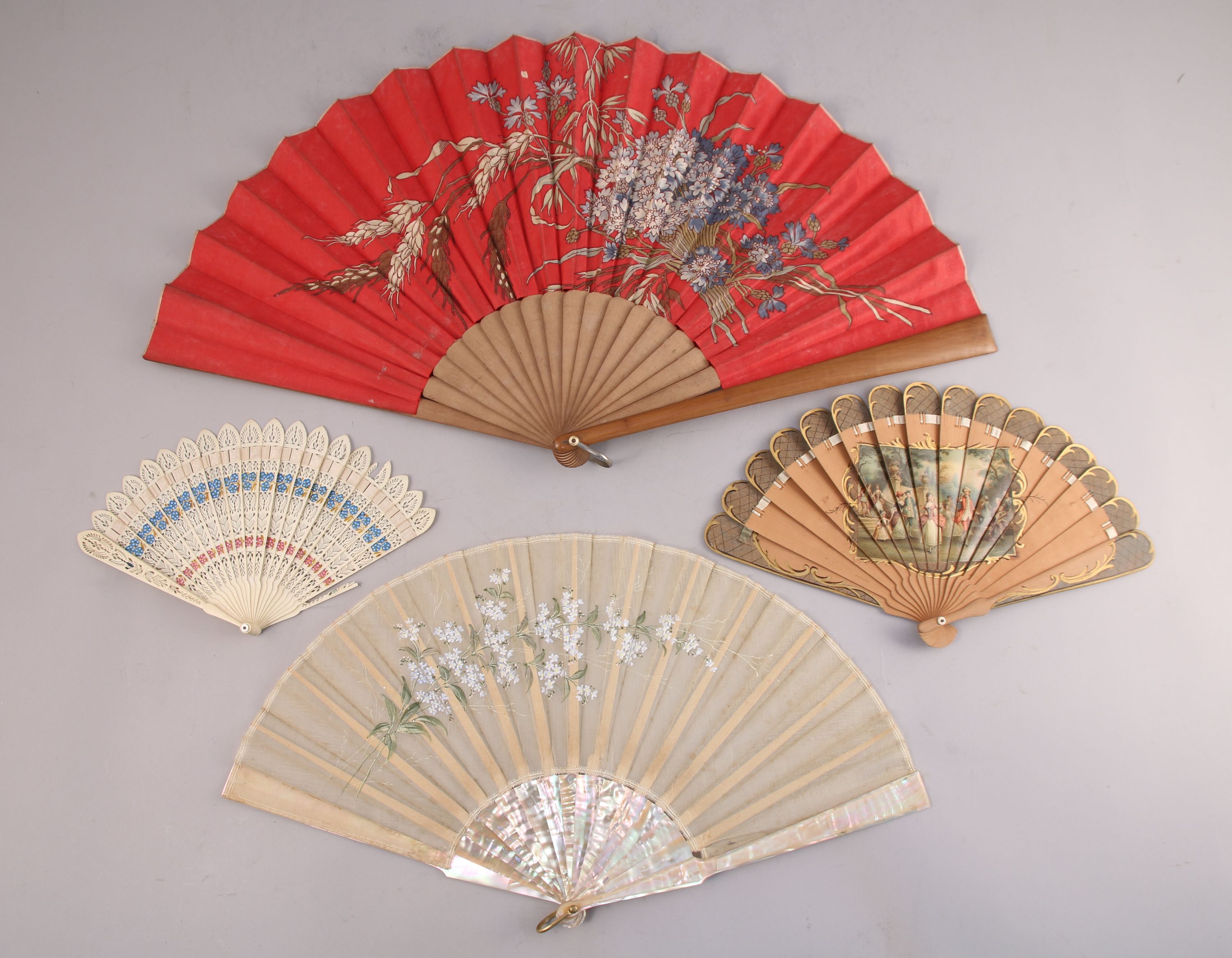 JOINT: QUATRE ÉVENTAILS pliés, XIX-XXe. (en l'état)