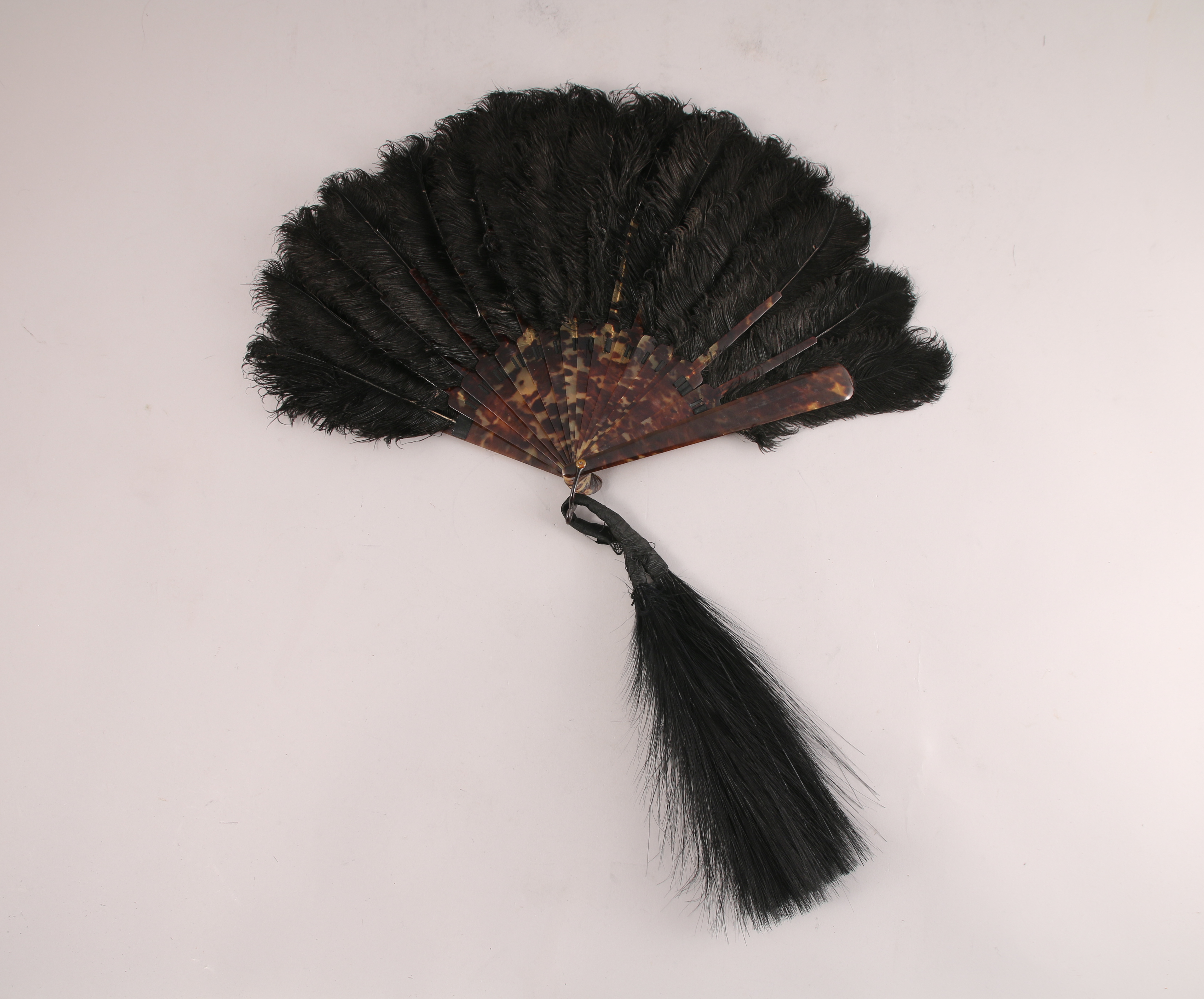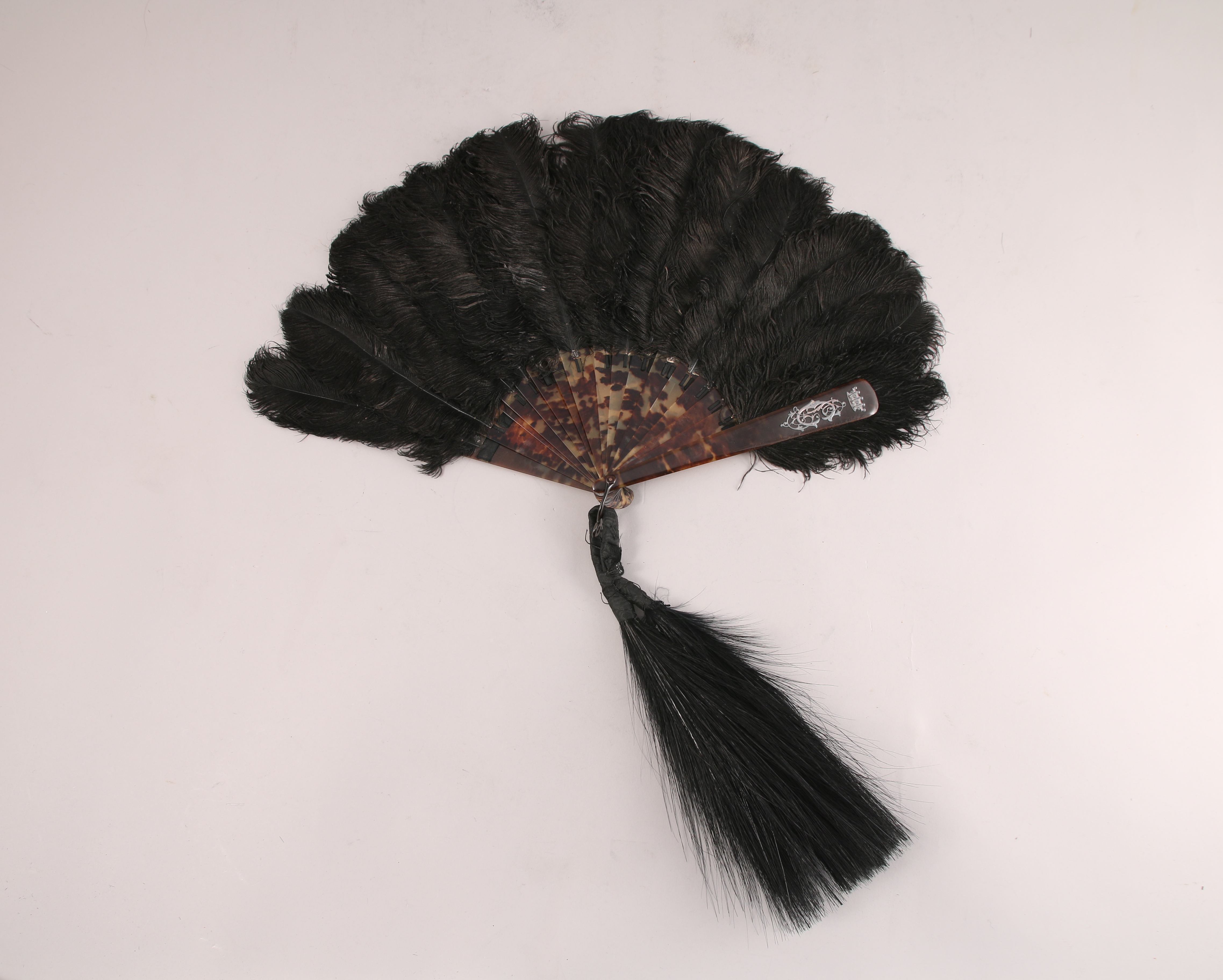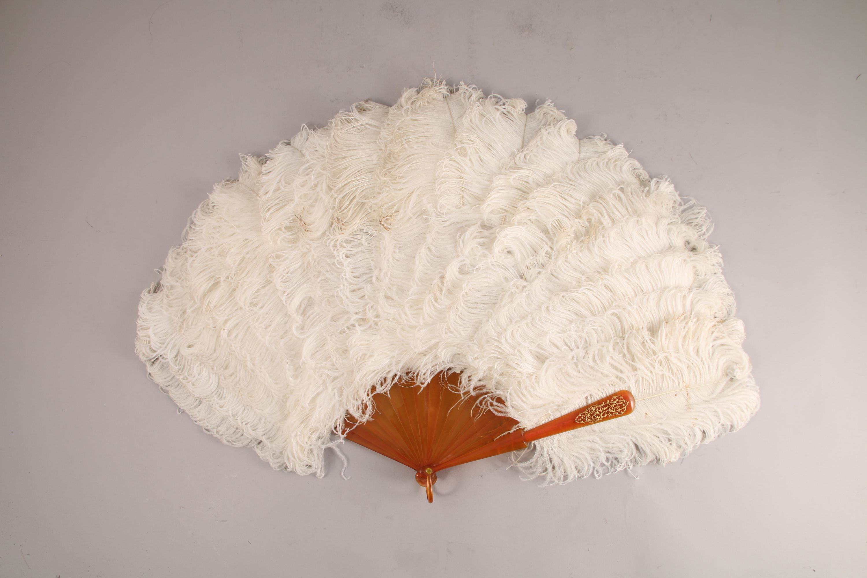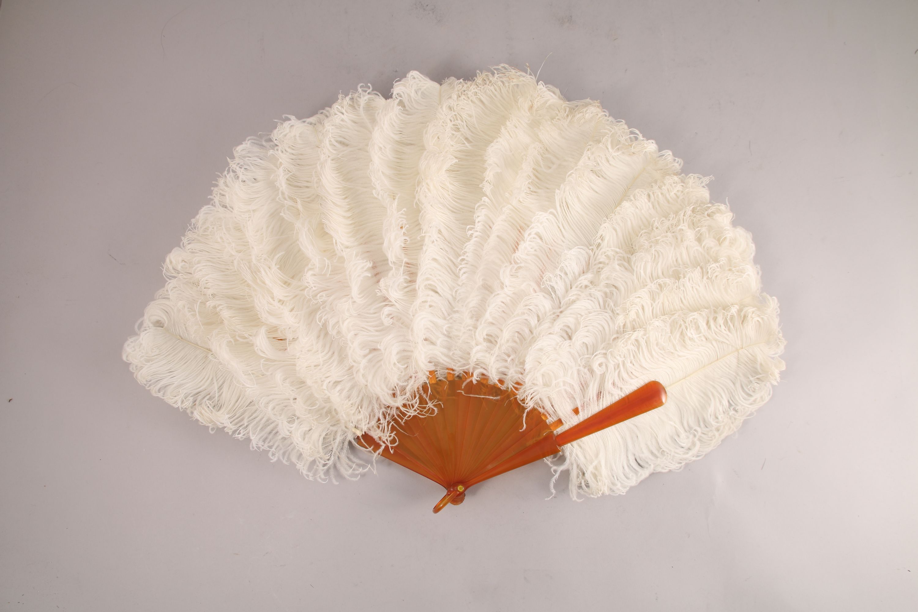 TROIS ÉVENTAILS pliés en plumes d'autruche.