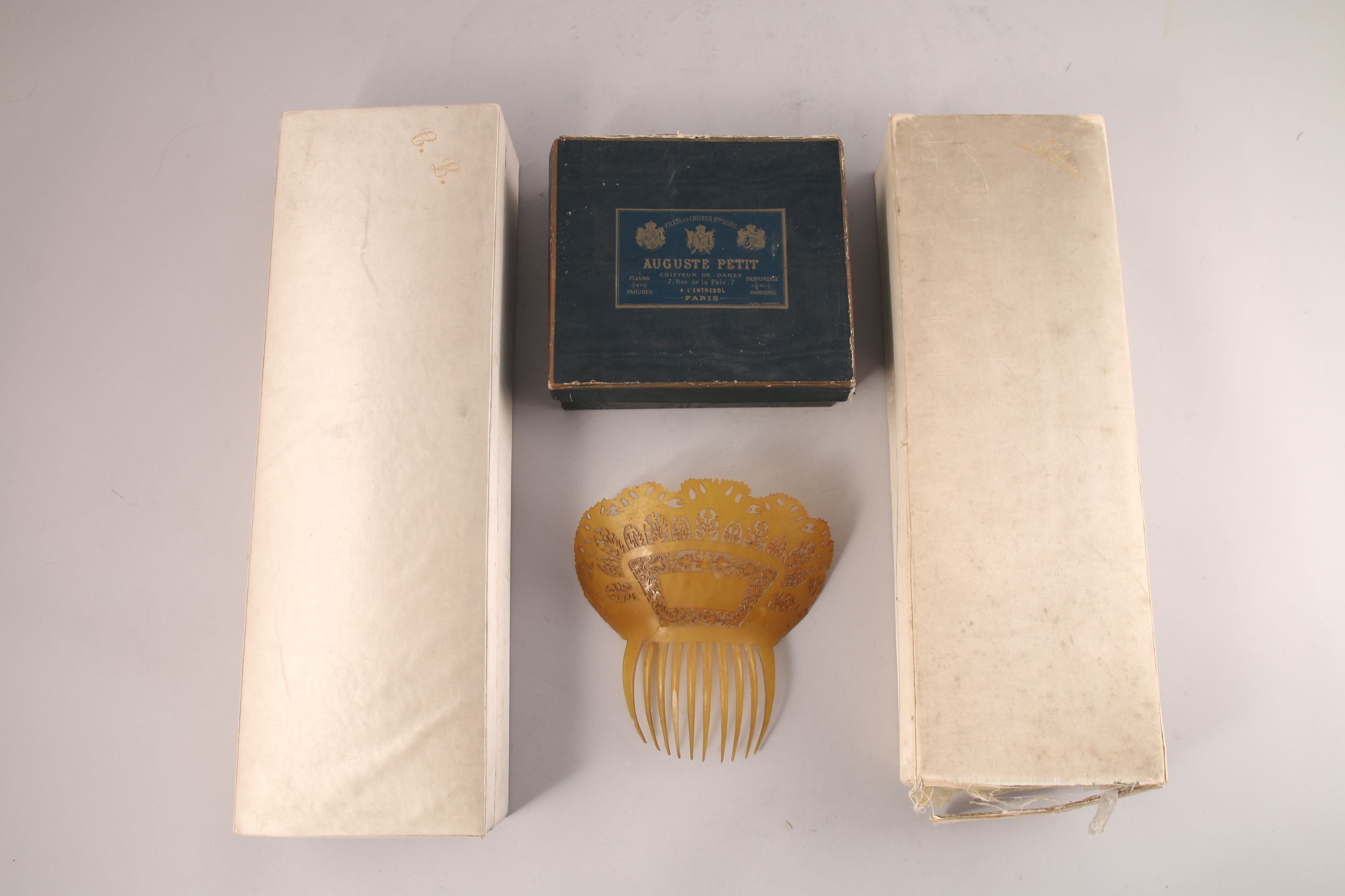 - Important PEIGNE en corne blonde à décor floral ajouré. Haut. 18,5, Larg. 17 cm.