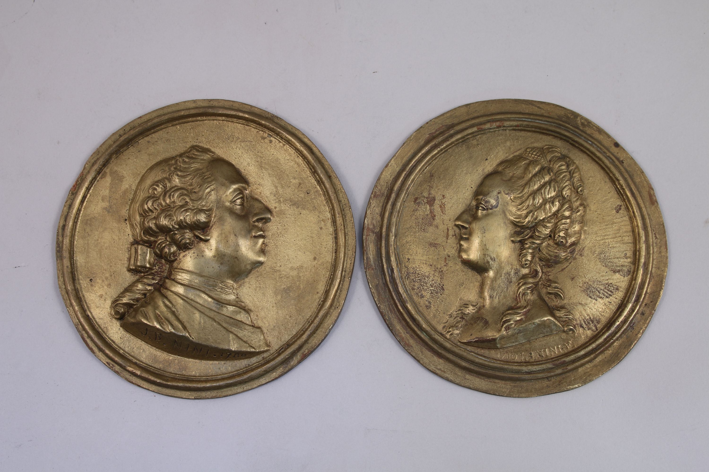 Paire de bustes en médaillon, d'un couple de profil dans le goût du XVIIIe.