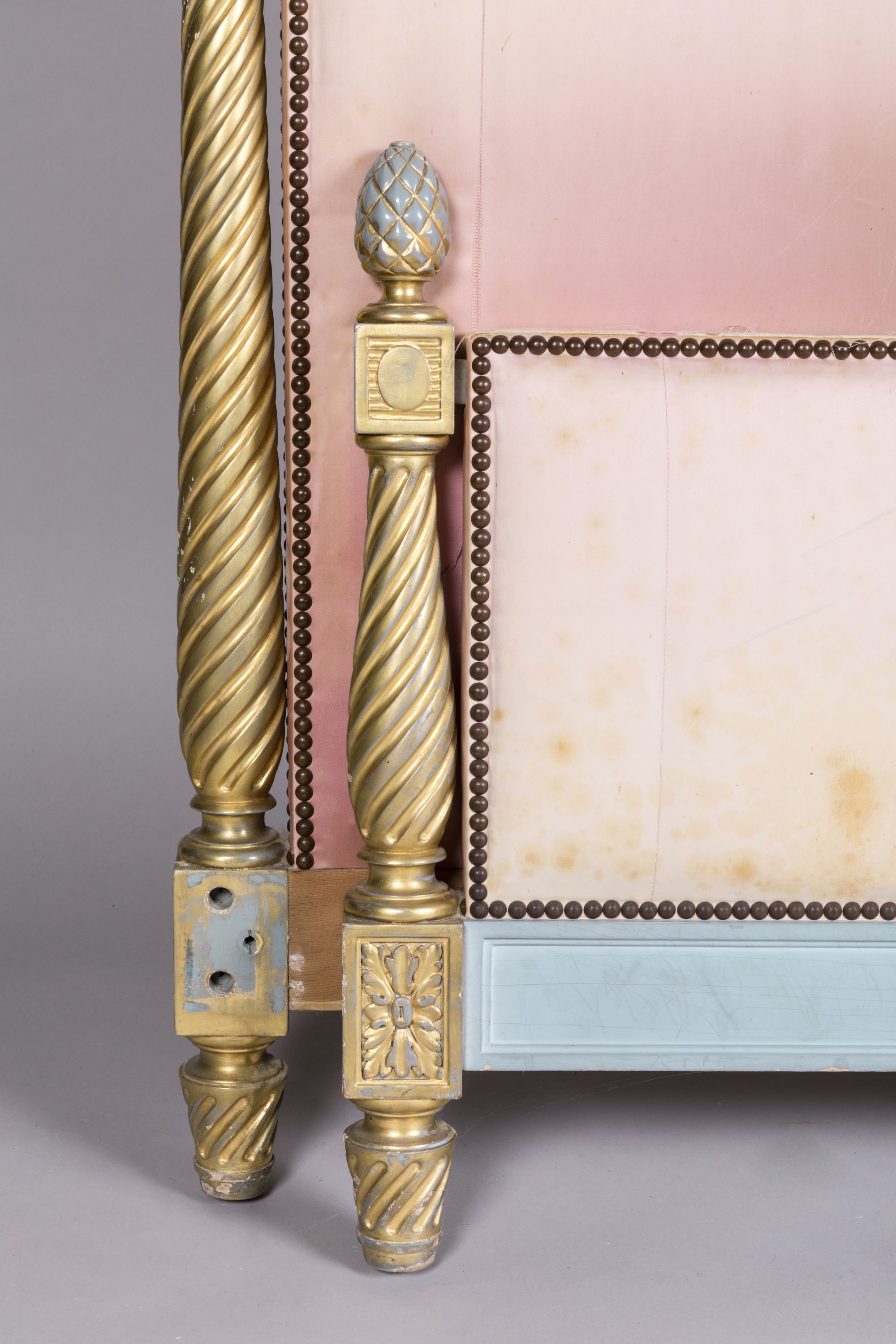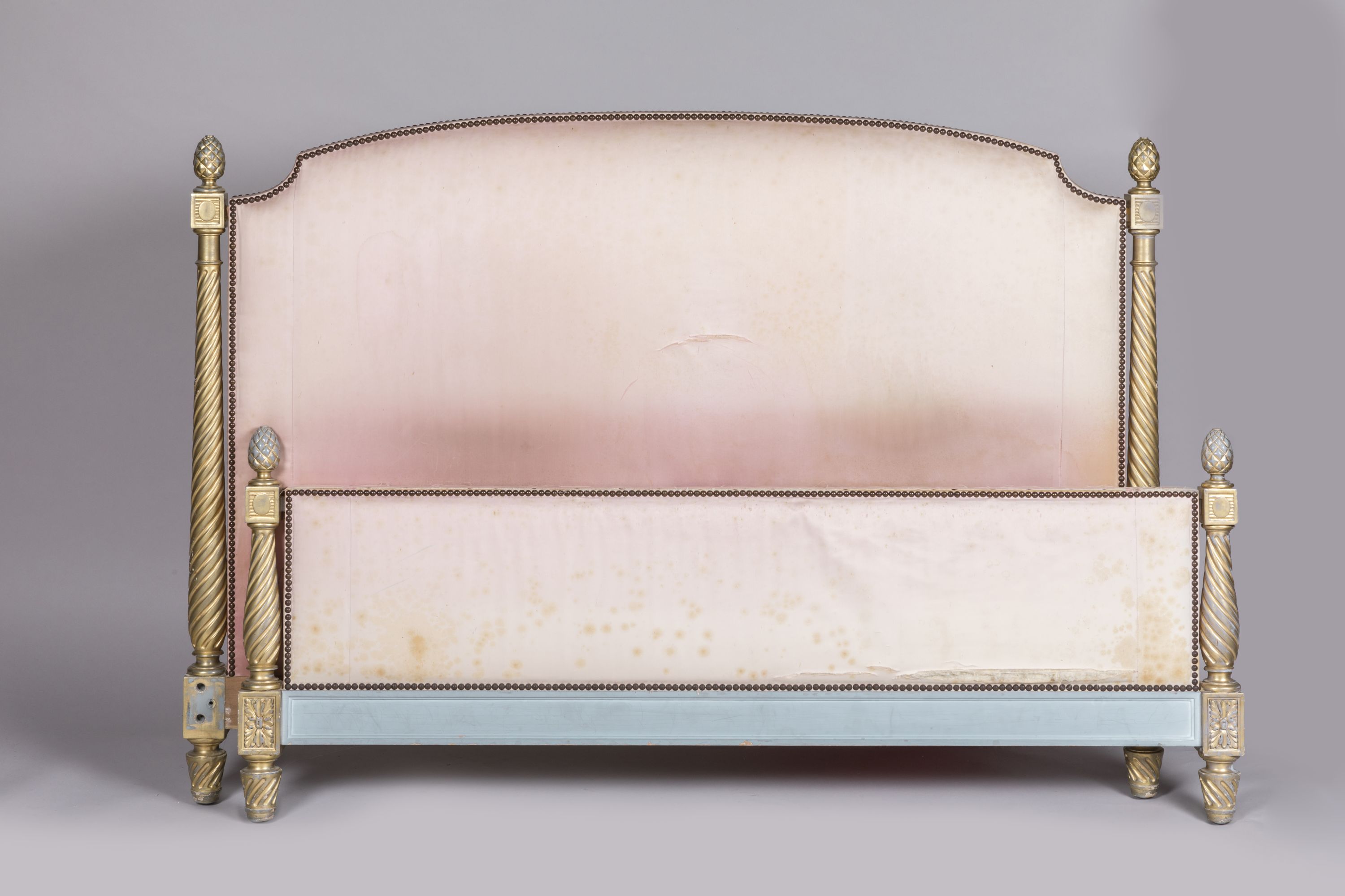 Provenance: placé dans la chambre de Madame de la Villa Tiffonet ; acquis auprès de la Galerie Jean Pascaud SA, 14 septembre 1949, sous la description "I lit laqué gris Frs 103.900" / "colonnes en bois tourné doré Frs 16.000".