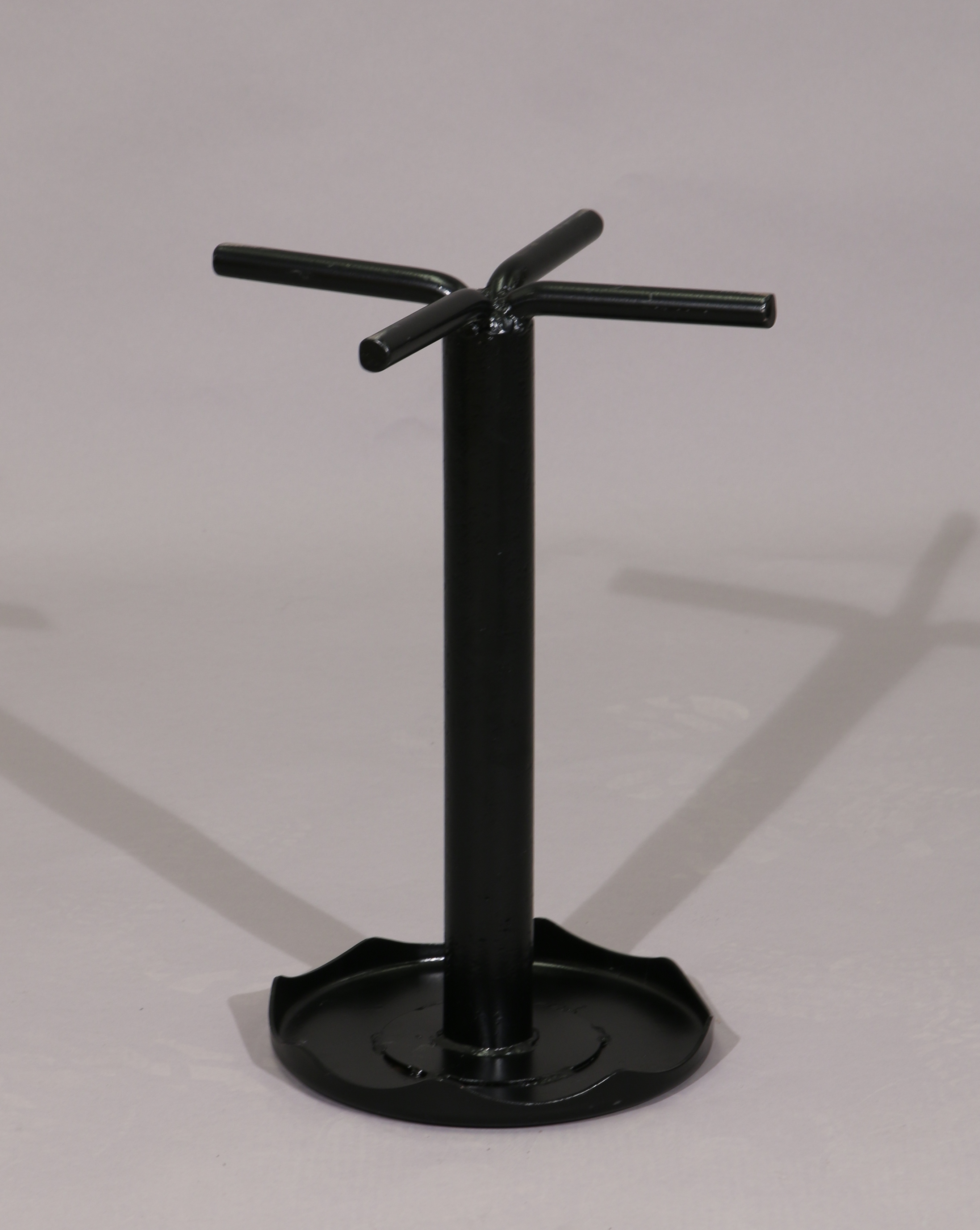en métal laqué noir. Assise de forme ronde à bords inférieurs chantournés. Piètement quadripode.