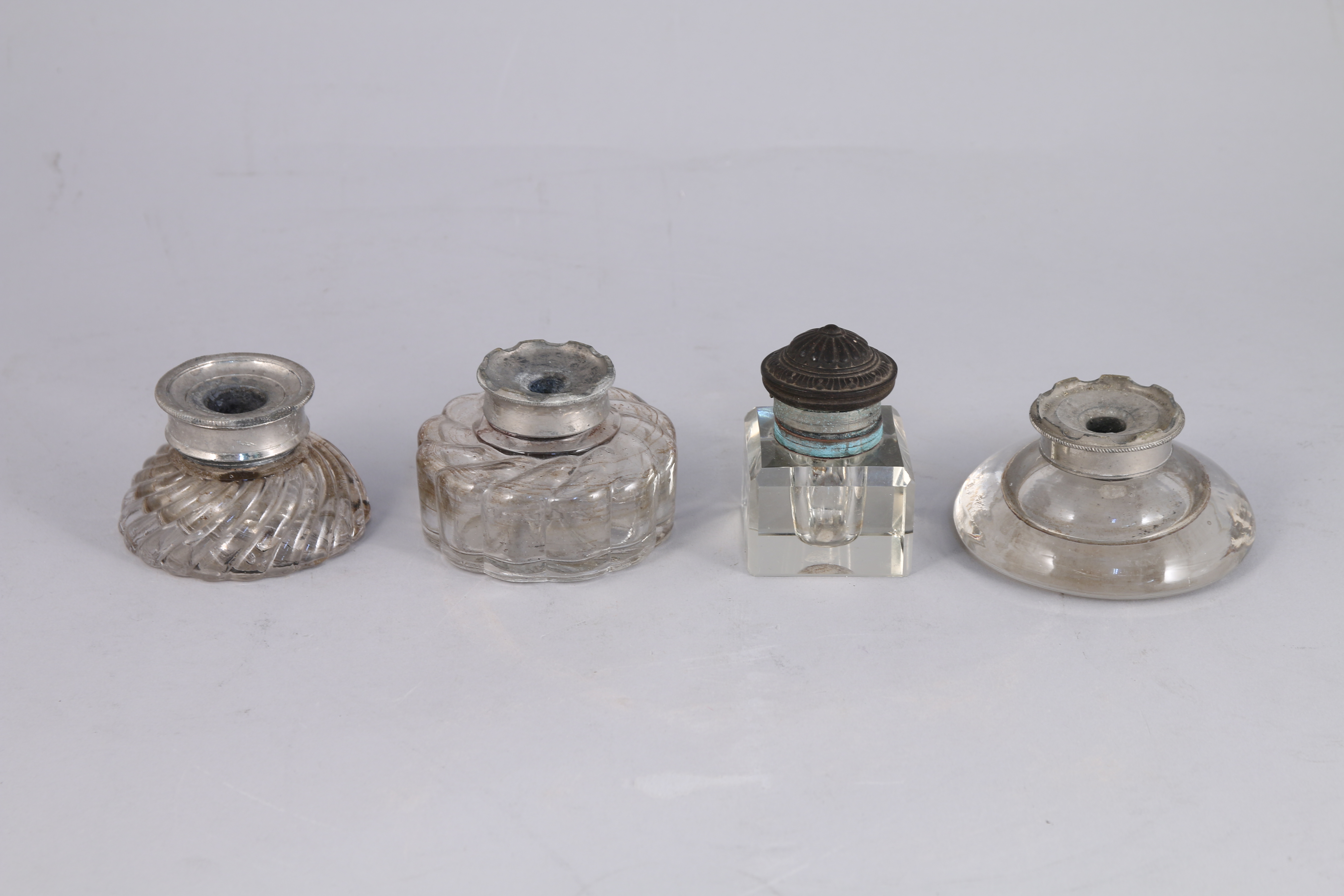 JOINT: QUATRE ENCRIERS à réceptacle en verre.