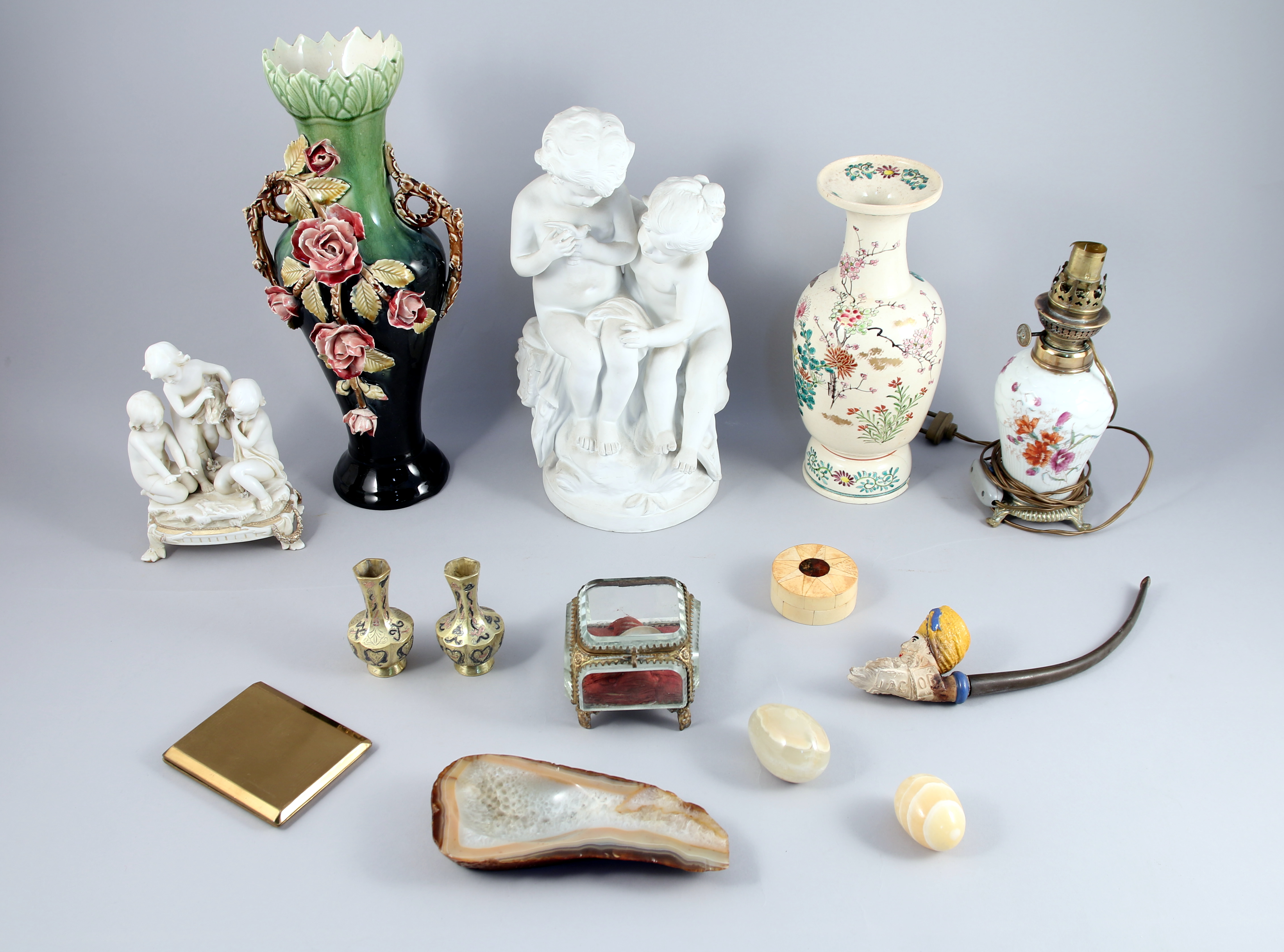 - Deux groupes en biscuit dans le goût du XVIIIe. Haut. du plus grand: 33 cm.