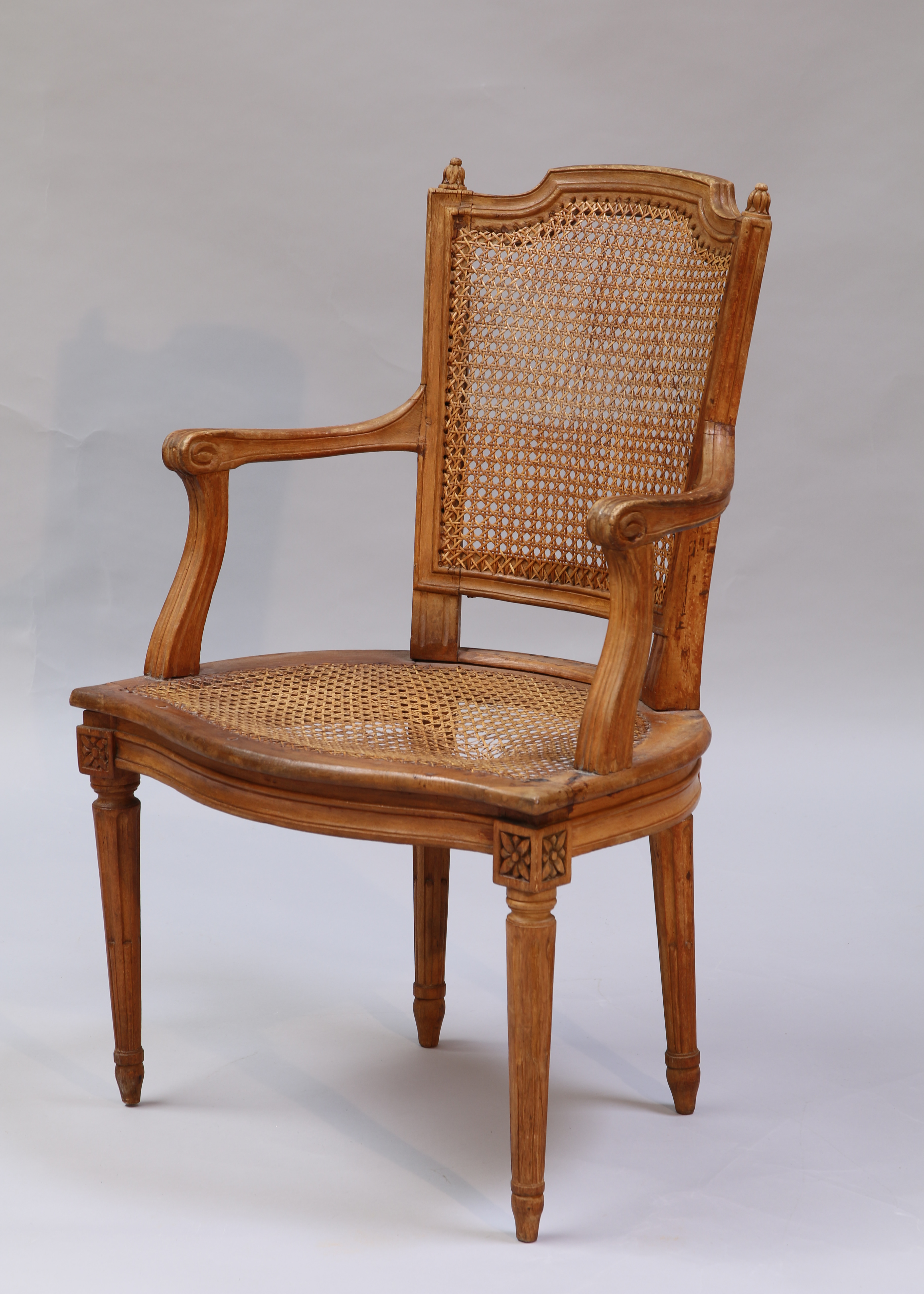 FAUTEUIL DE BUREAU canné en hêtre mouluré et sculpté.