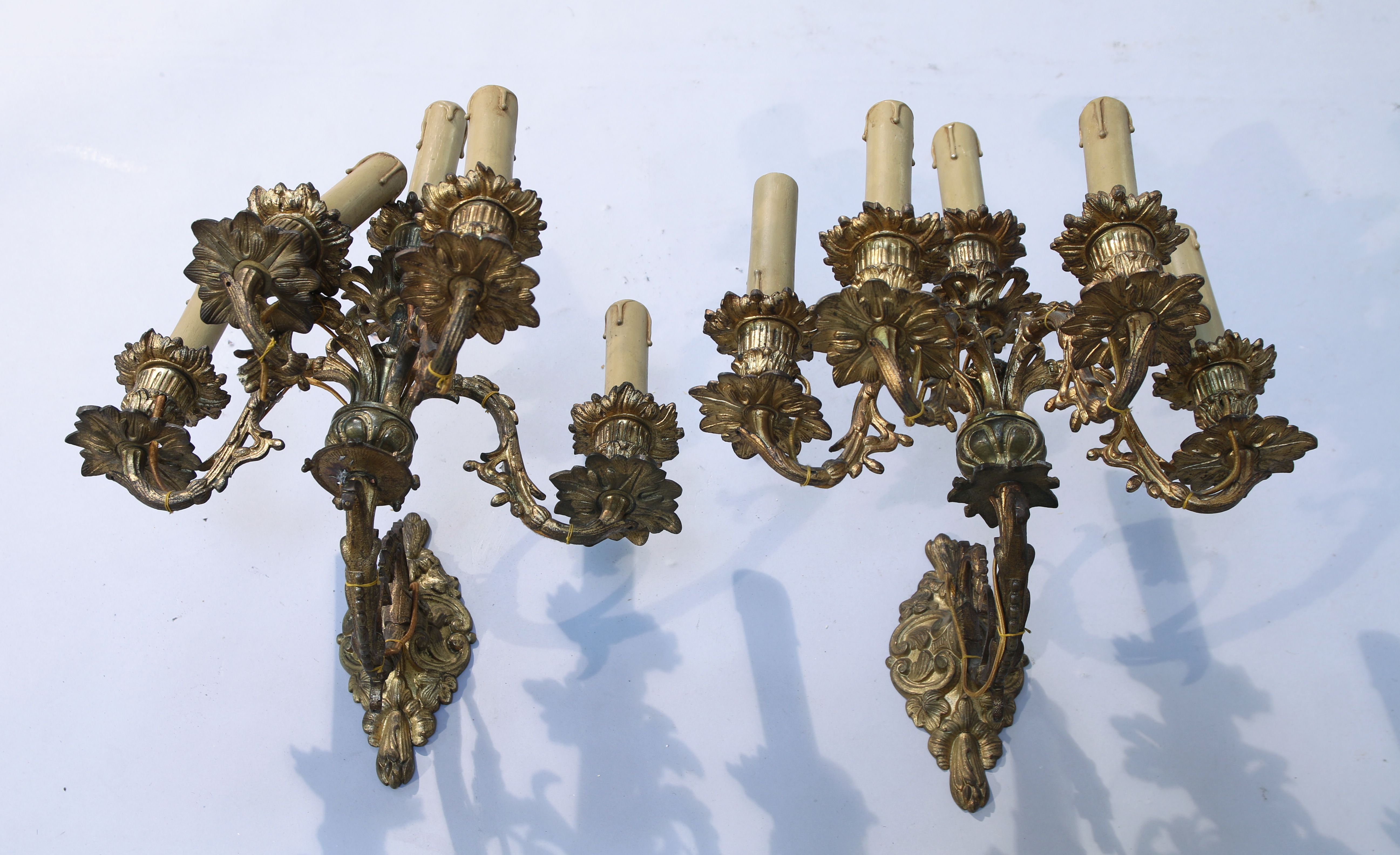 PAIRE d'APPLIQUES en bronze à cinq lumières.