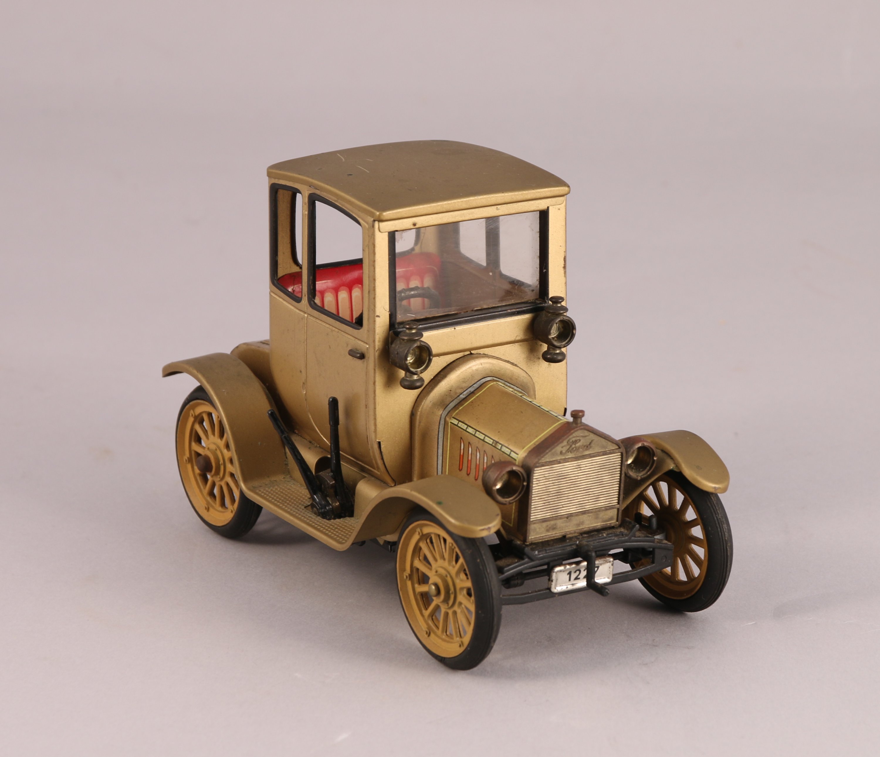 SCHUCO. FORD coupé modèle T 1917 de couleur or. Avec sa clef de remontoir.