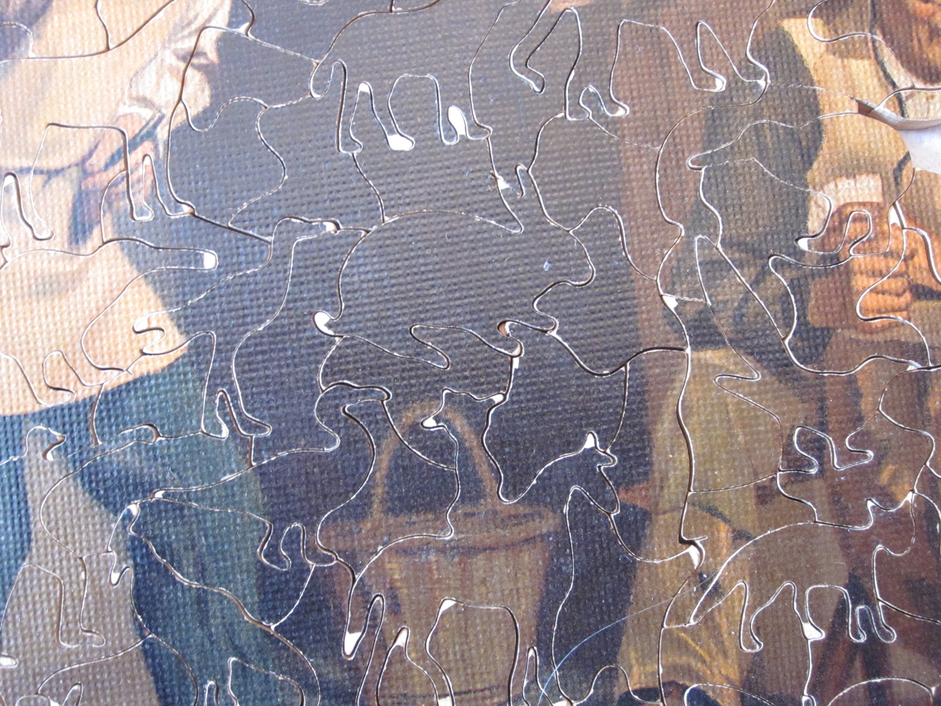 "LAFAYETTE PUZZLE". "Une partie de cartes", environ 400 pièces reproduisant le tableau de Jean Moreau (manque 5 pièces). Dans sa boîte d'origine. Travail des années 1910.