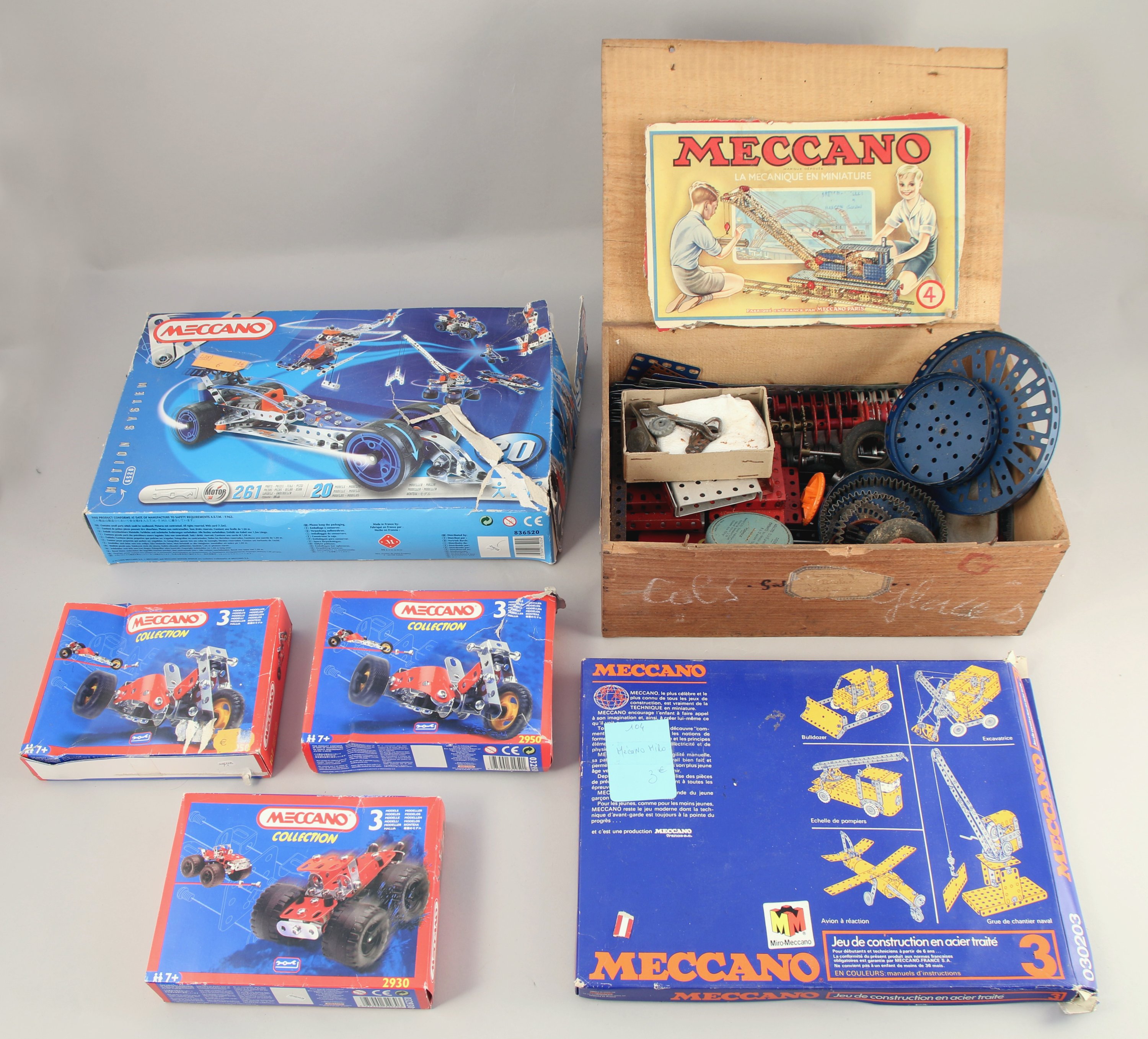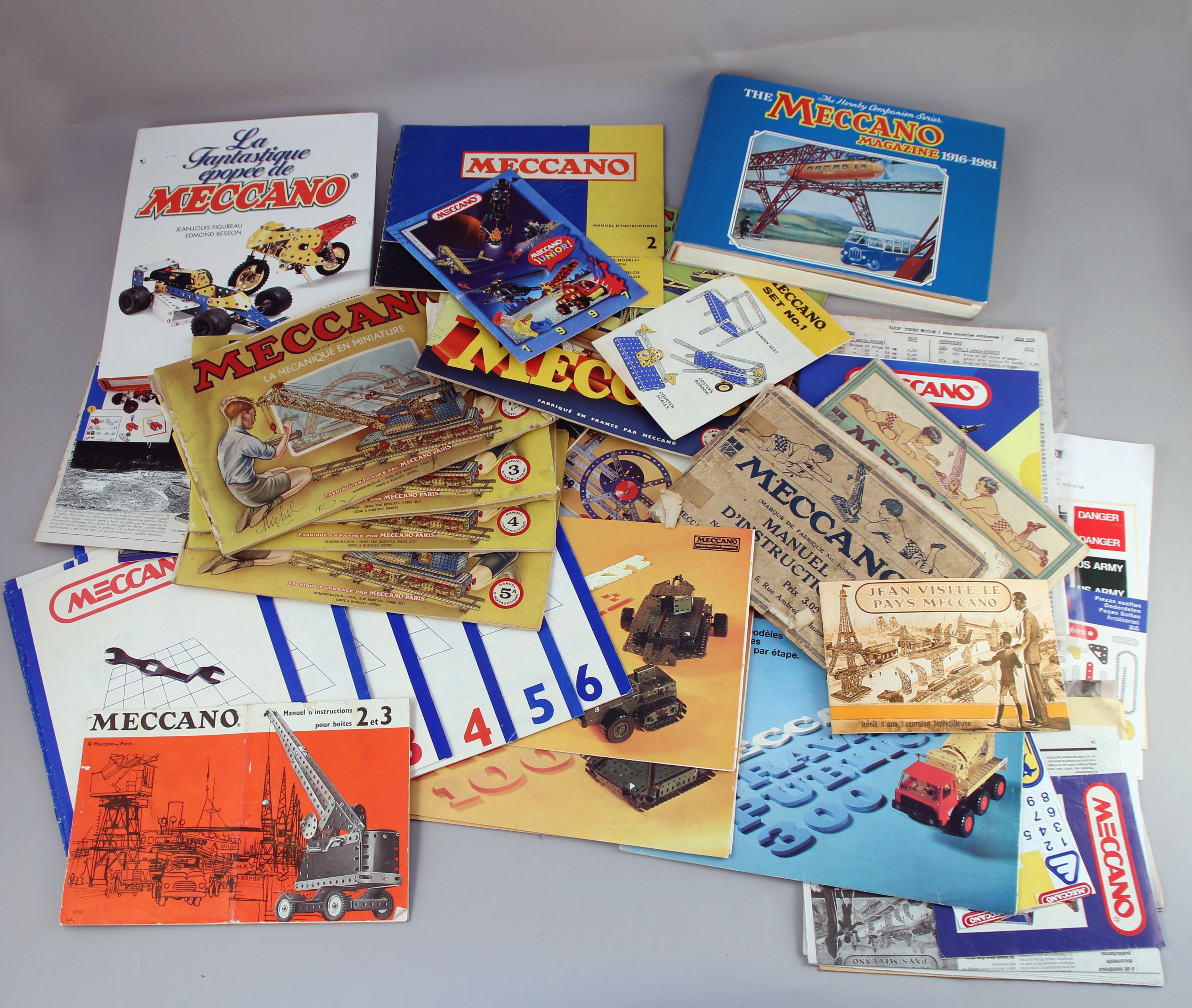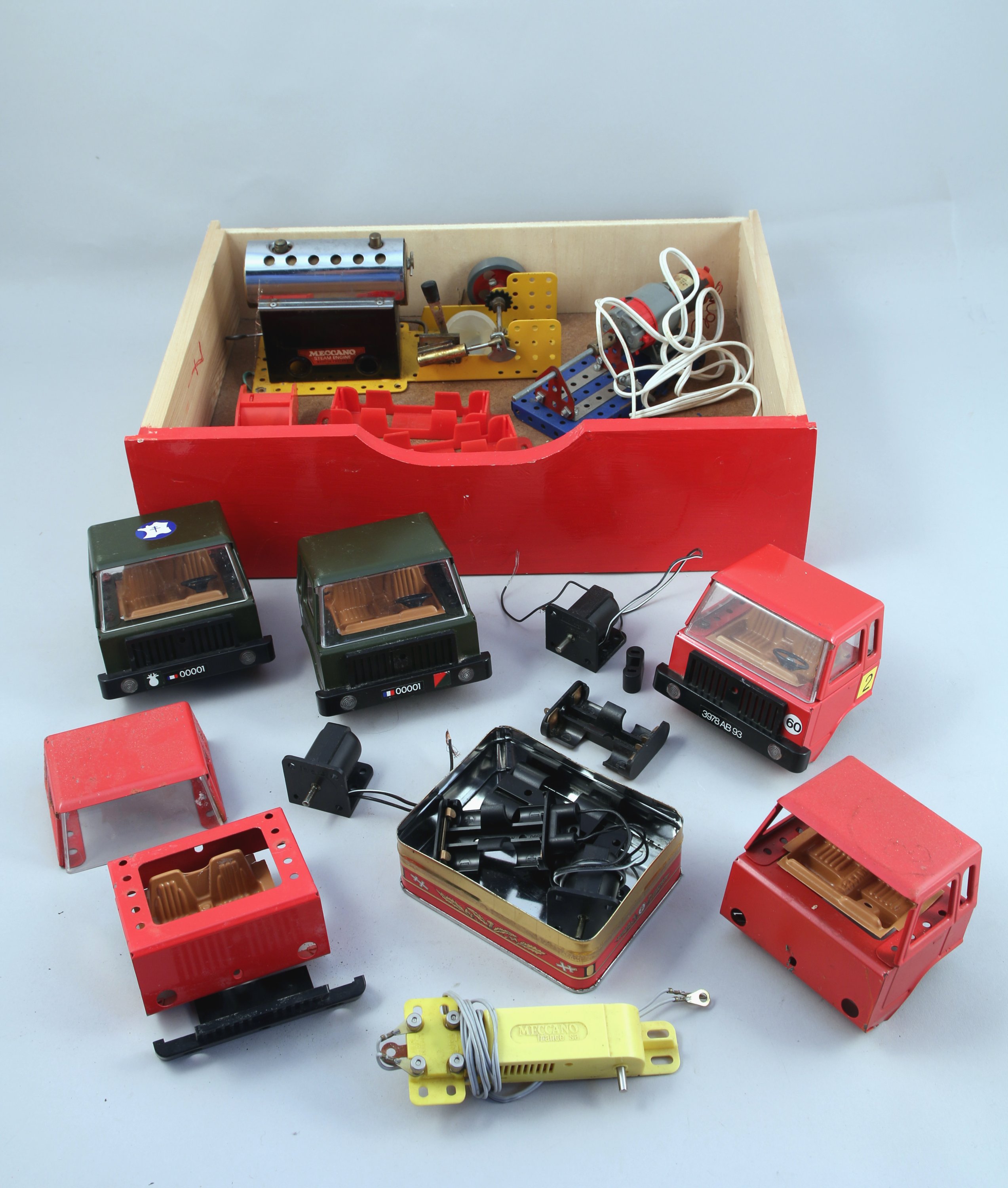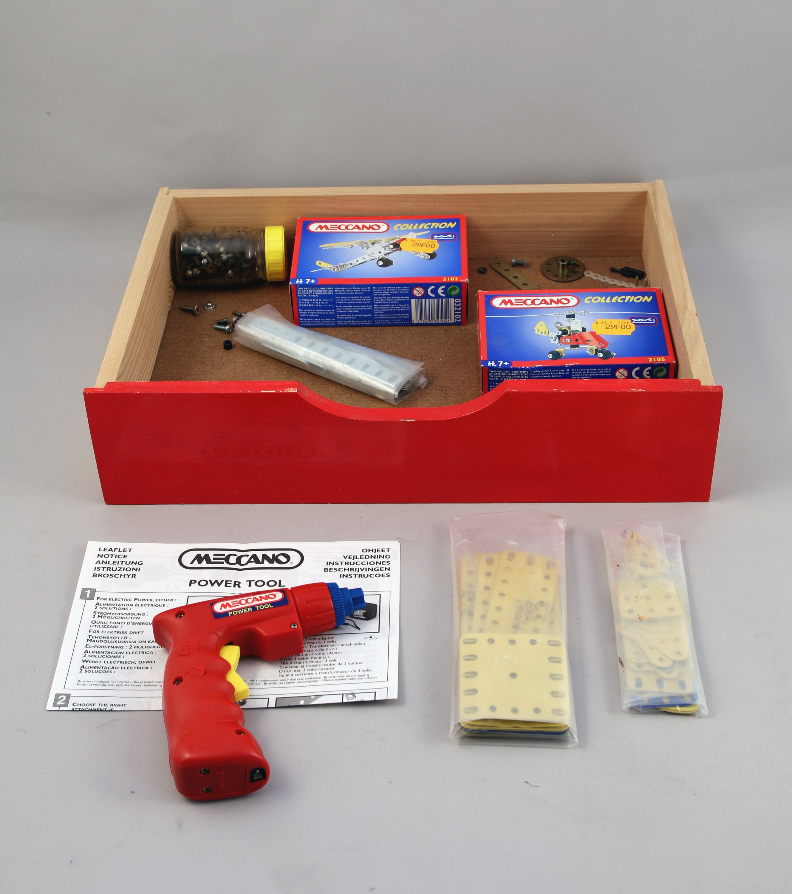 MECCANO. Importante réunion de PIÈCES dans un meuble à huit tiroirs et neuf boîtes. Manuels et documentation. (en l'état)