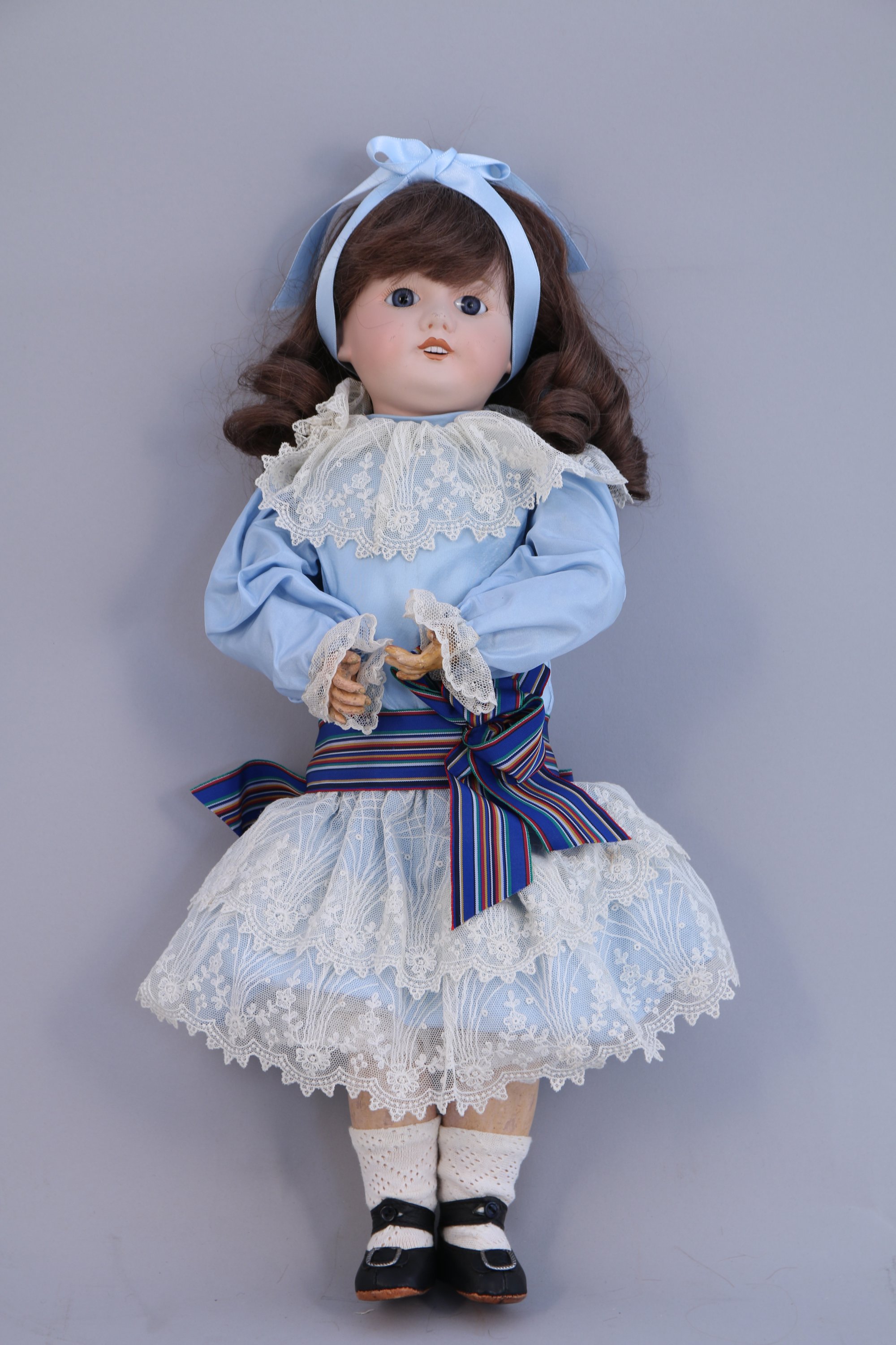JOINT: POUPÉE tête porcelaine. Yeux bleus, bouche ouverte, corps tout articulé.