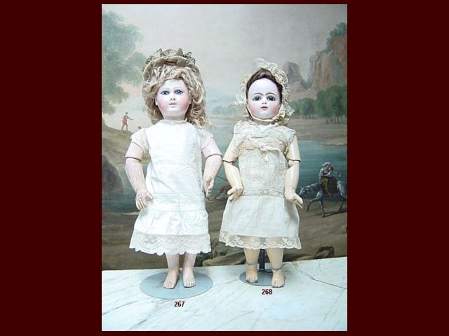 Bouche fermée avec langue modelée, yeux de sulfure gris vert, beau corps articulé d'origine à poignets fixes, en bois et composition (écaillures au tronc et aux pieds). 50 cm.