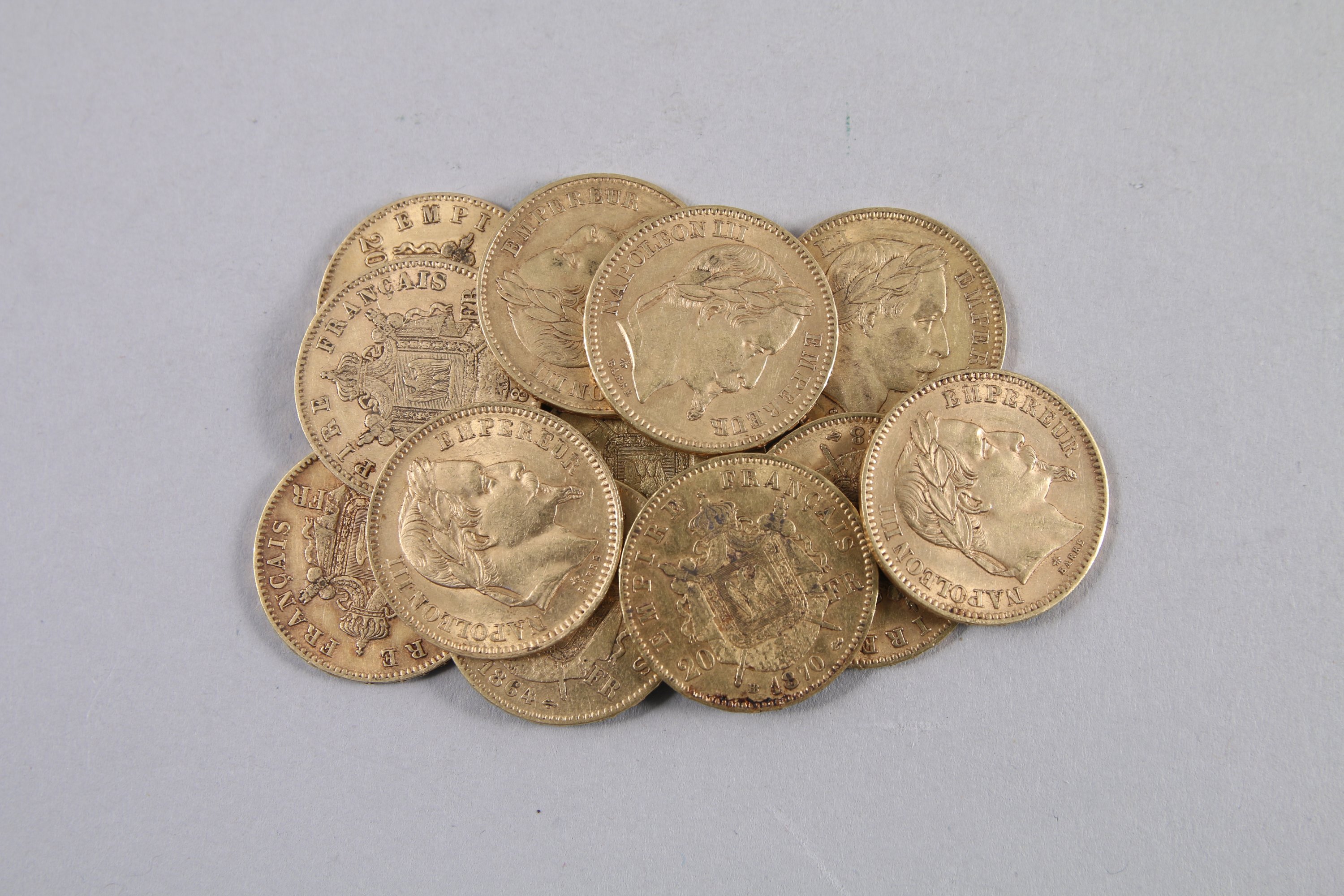 FRANCE. Napoléon III. Réunion de 12 PIÈCES de 20 F or, tête laurée. 1862, 1864, 1865 (quatre), 1867 (trois), 1868 et 1870 (deux).