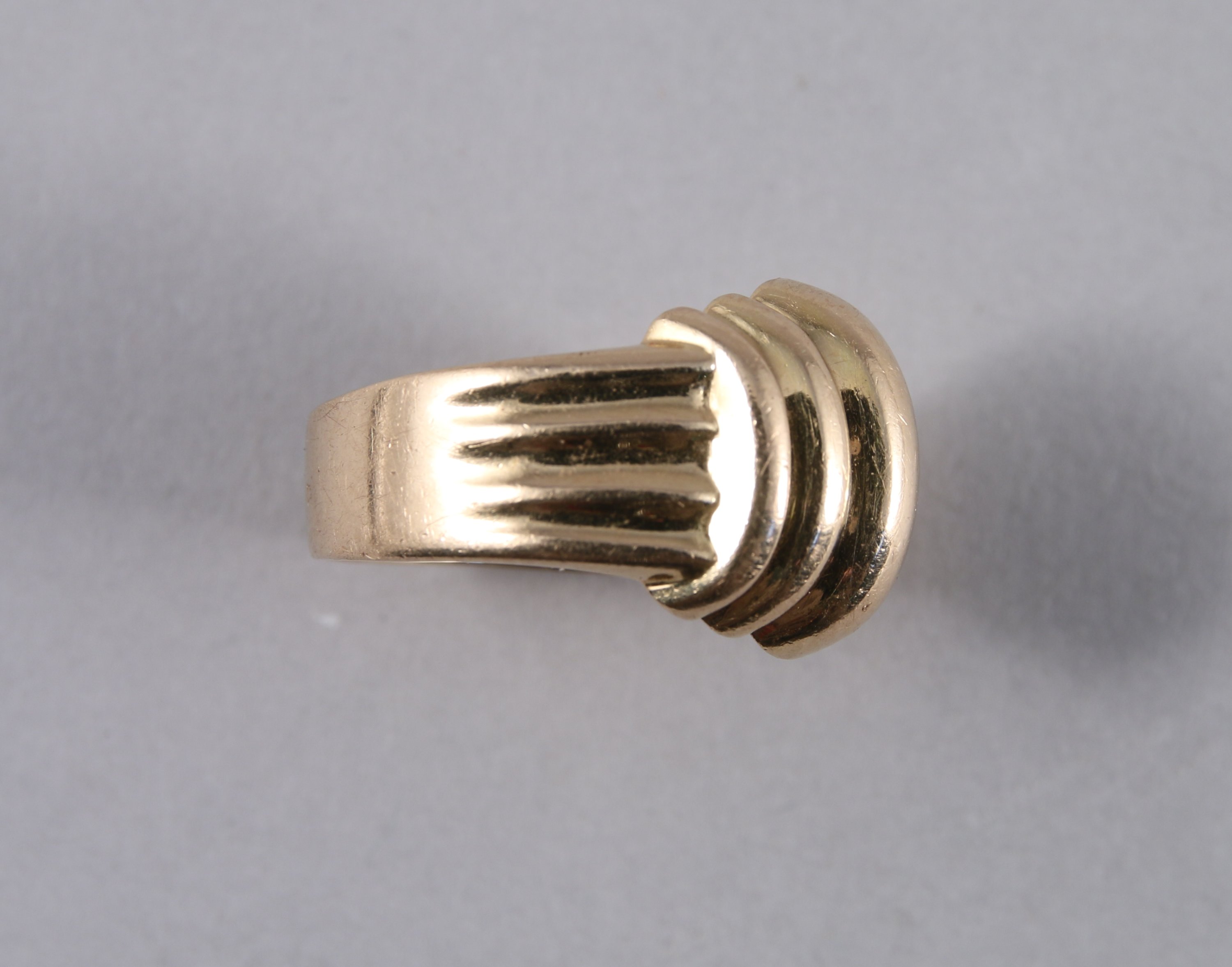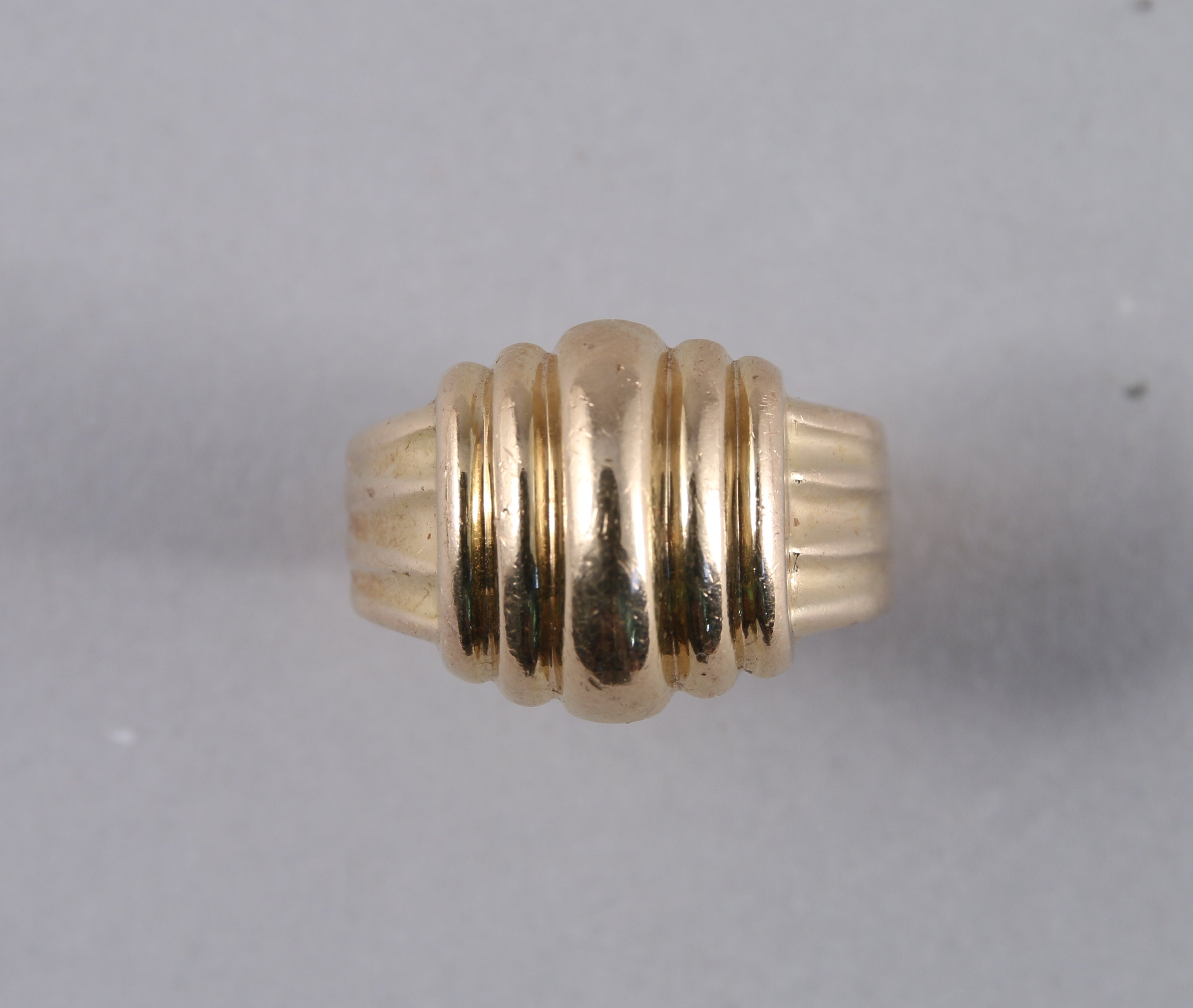 BAGUE en or jaune 750 millièmes ornée de godrons et cannelures.