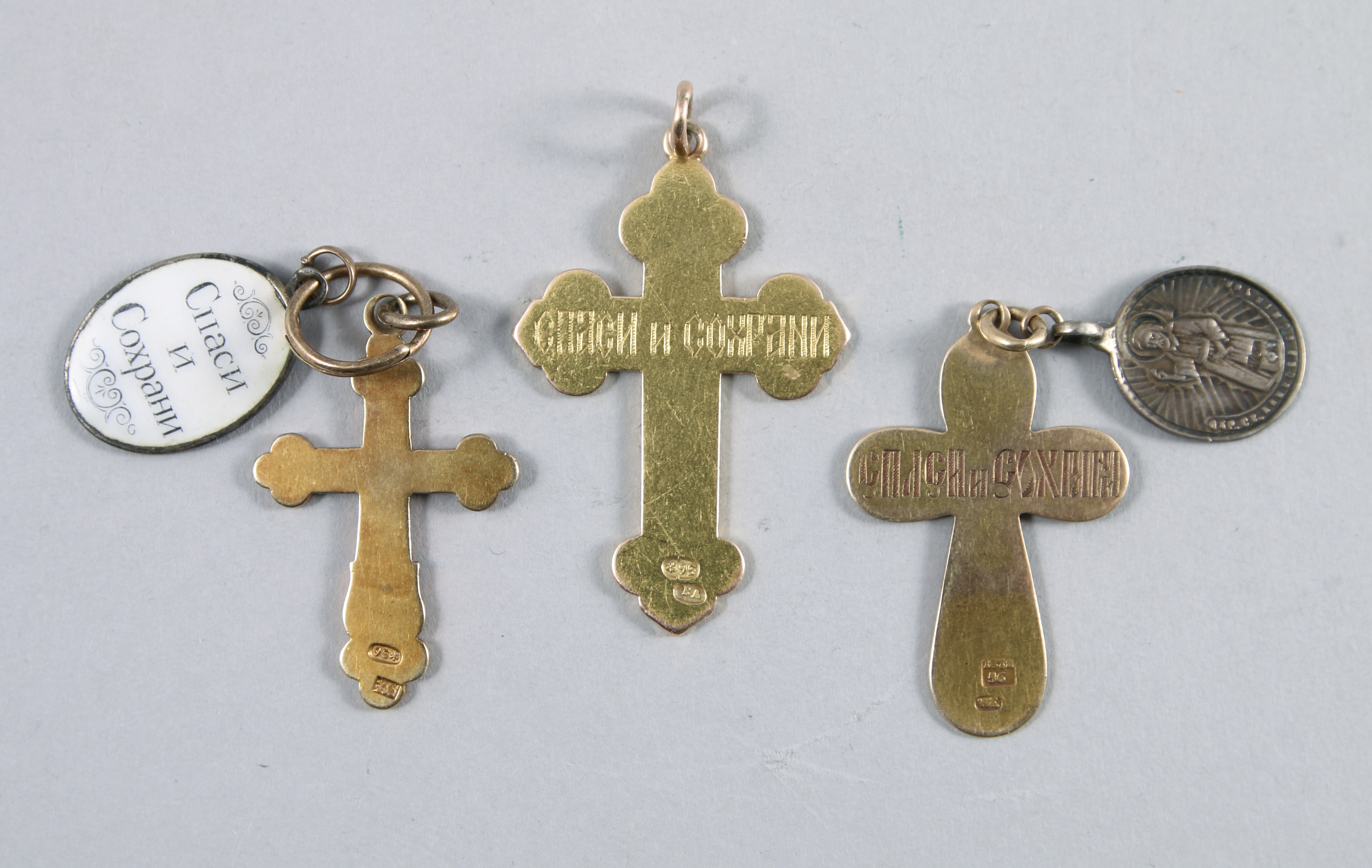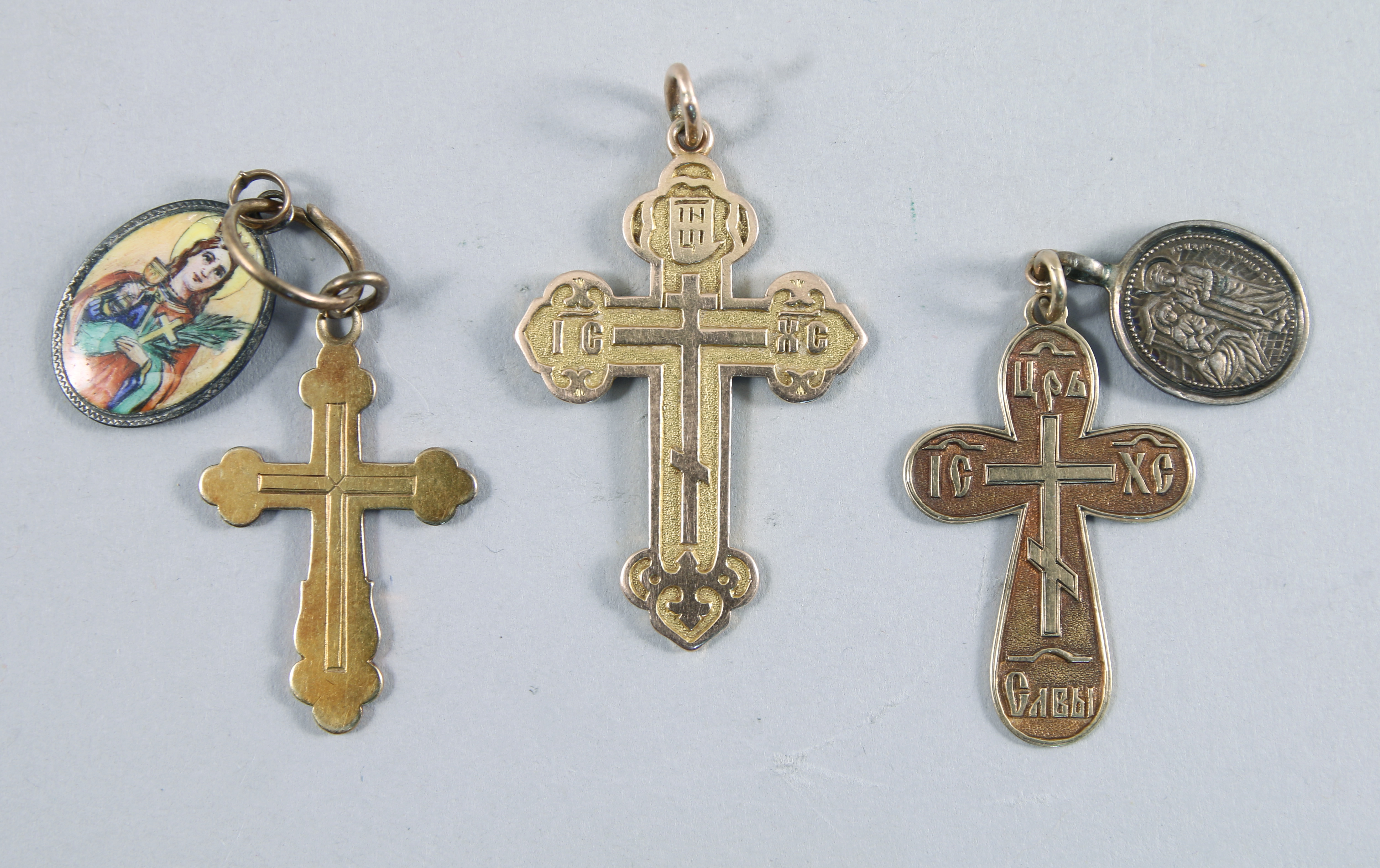 TROIS CROIX-PENDENTIFS orthodoxes en or.