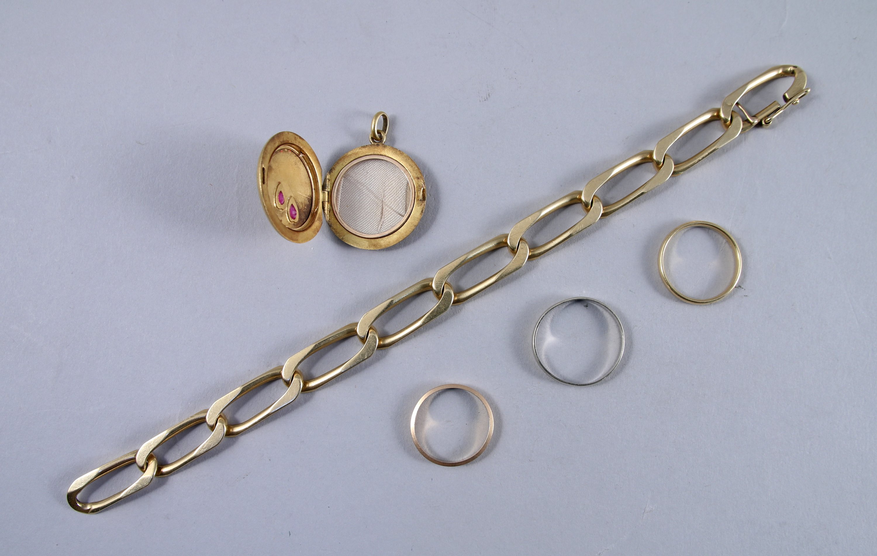 Réunion de CINQ BIJOUX en OR jaune 750 millièmes: