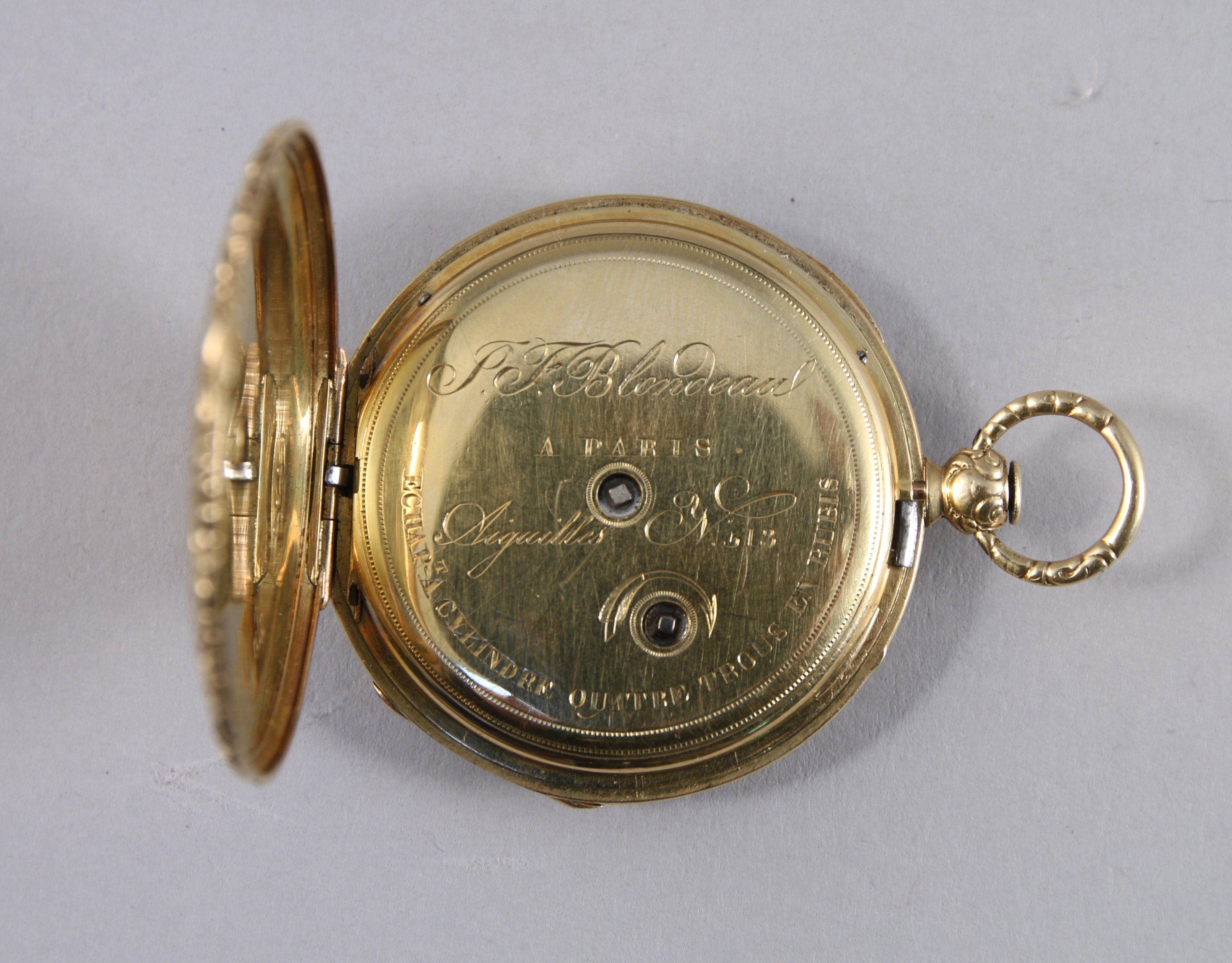 Signé " F P Blondeau, à Paris, aiguilles n° 513. échapt a cylindre quatre trous en rubis "