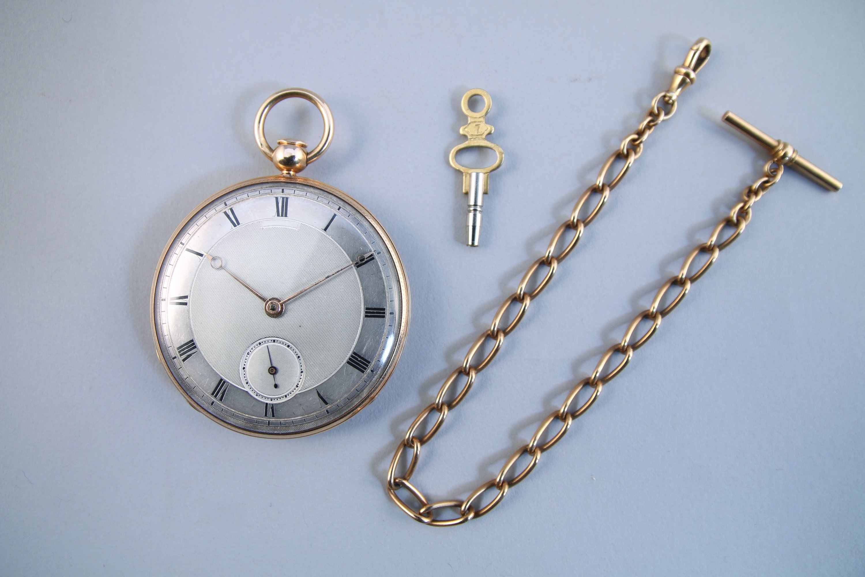 HAUCHAR. Belle MONTRE PLATE à SONNERIE à boitier en or jaune au fond guilloché . Double cadran en acier gradué pour les minutes avec les heures en chiffres romain. Trotteuse des secondes dans un plus petit cadran à six heures. Bélière à midi et mécanisme pour déclencher la sonnerie. Le cache poussière en or jaune gravé "Hauchar (ou F Cauchar?) élève de Bréguet à Paris" et numéroté "2094". Remontoir à clé à l'arrière.