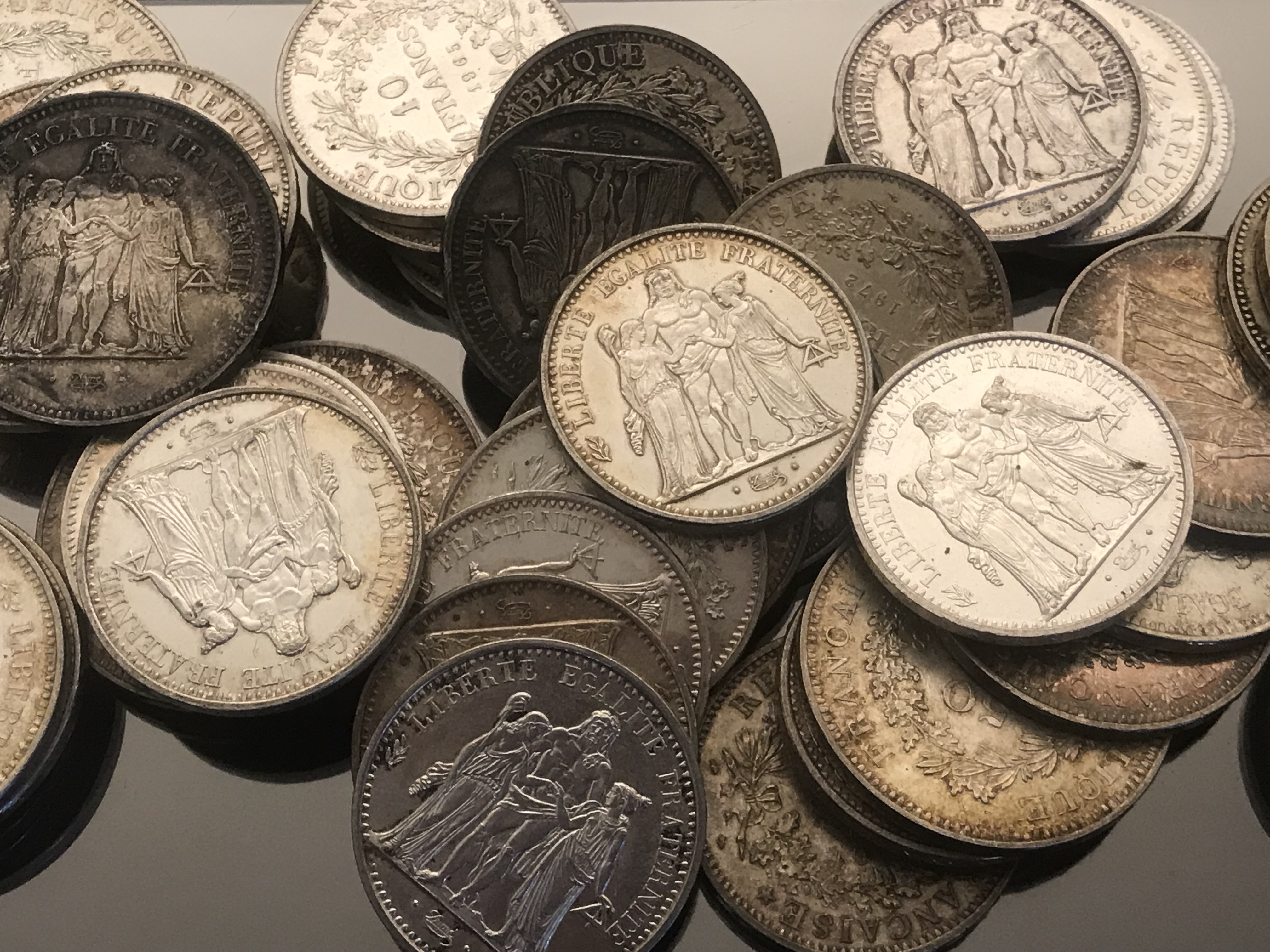 FRANCE. 34 pièces de 10 FRANCS et 13 pièces de 50 FRANCS en argent modèle Dupré Lafon.