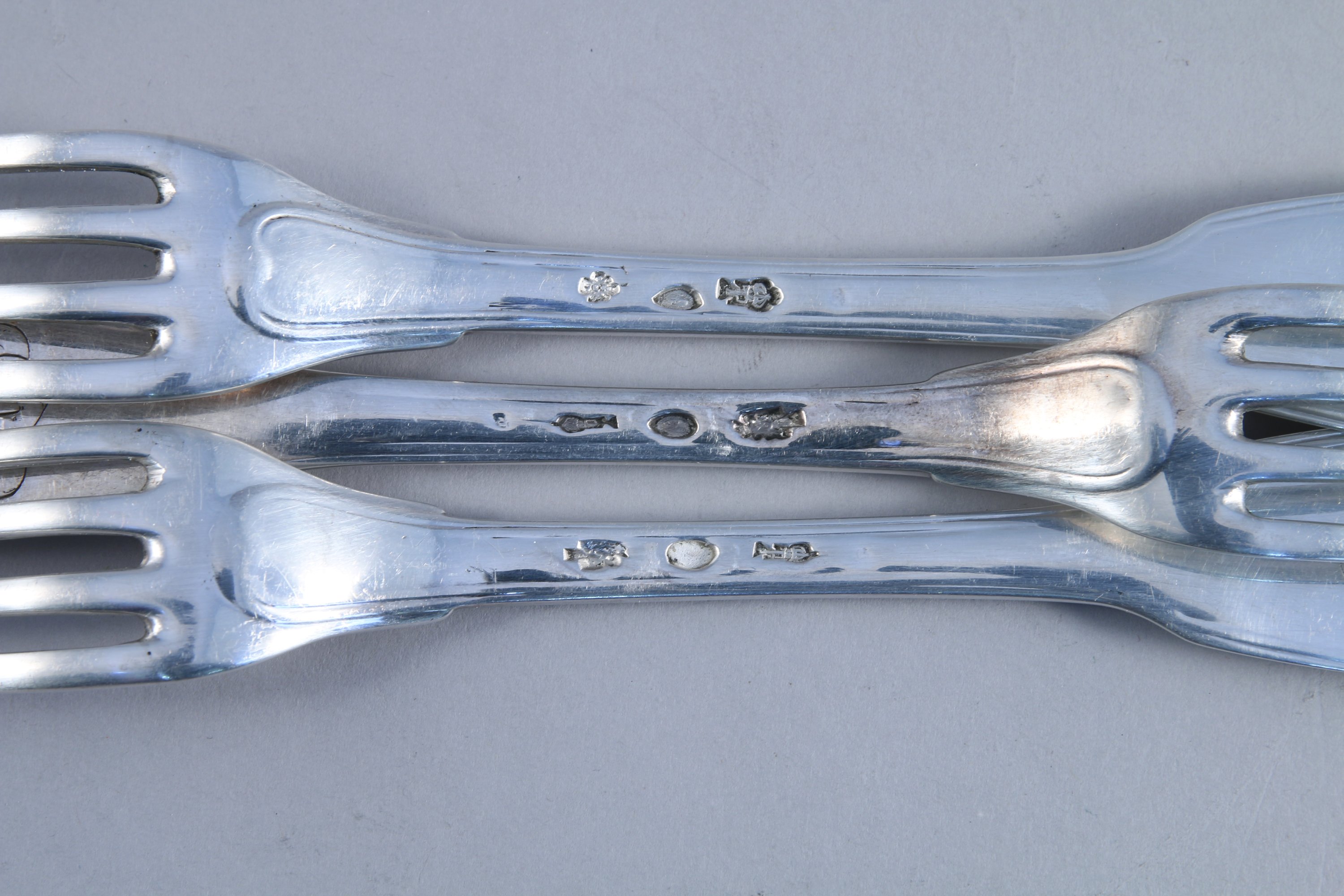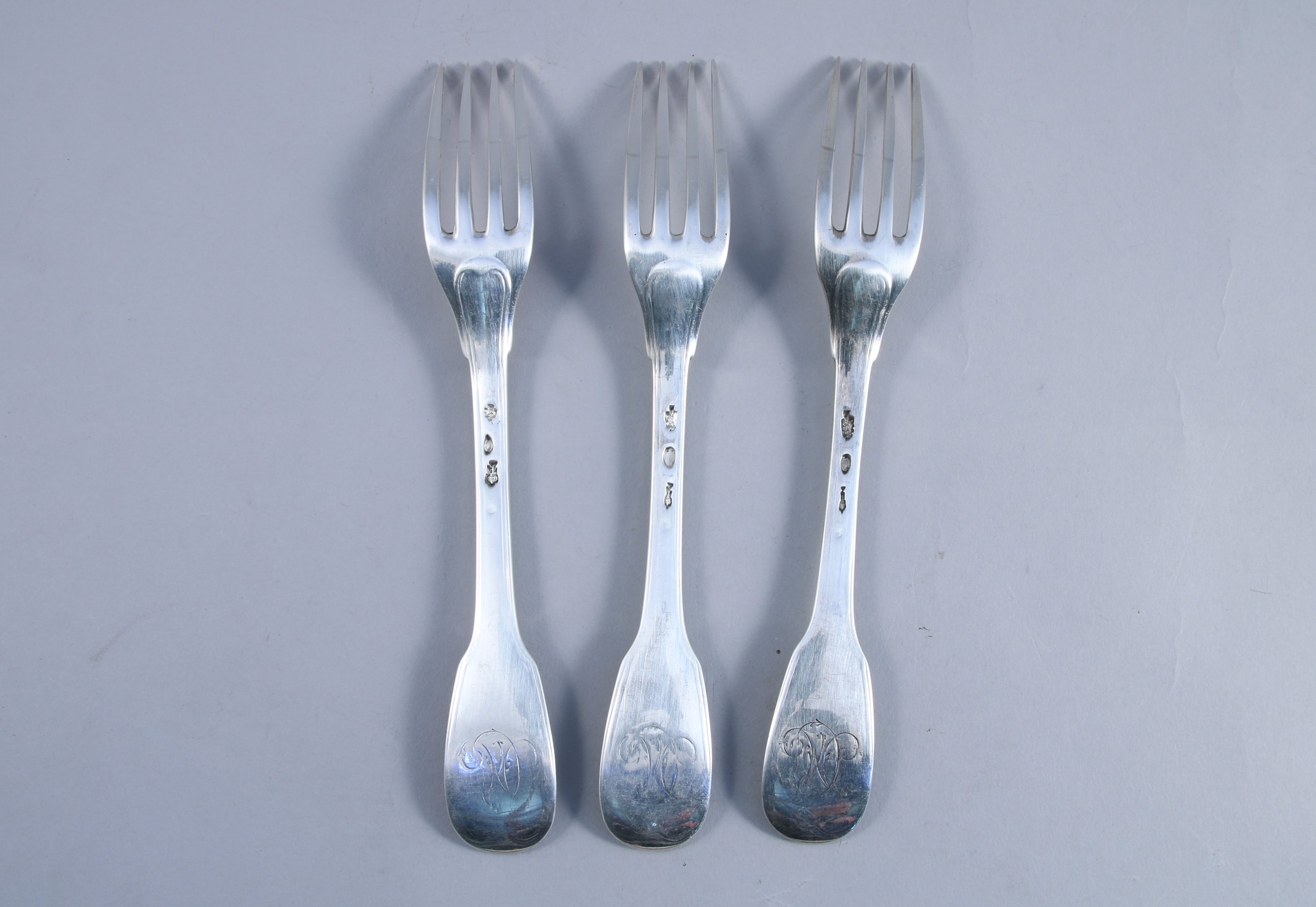 - Suite de trois fourchettes. La spatule monogrammée "CM". Paris, 1789.