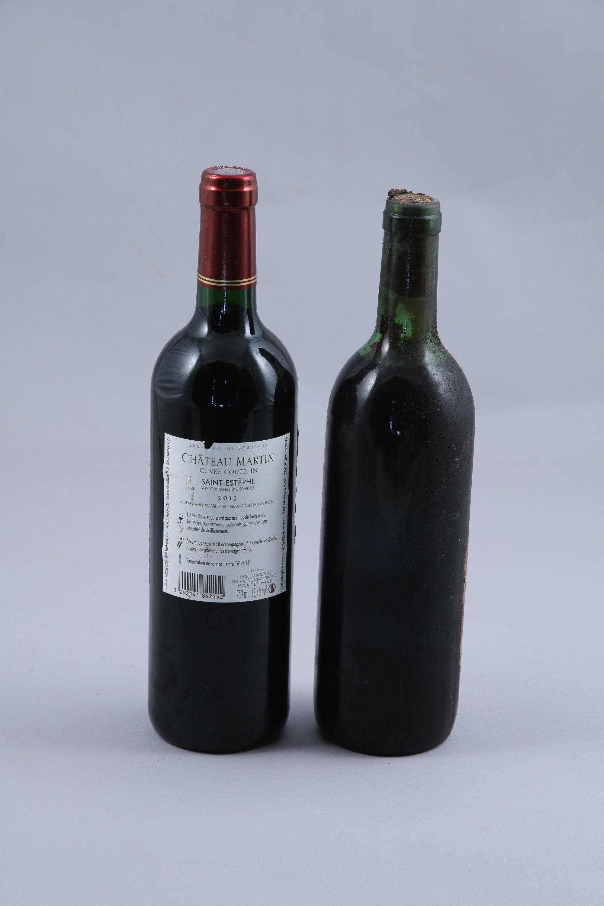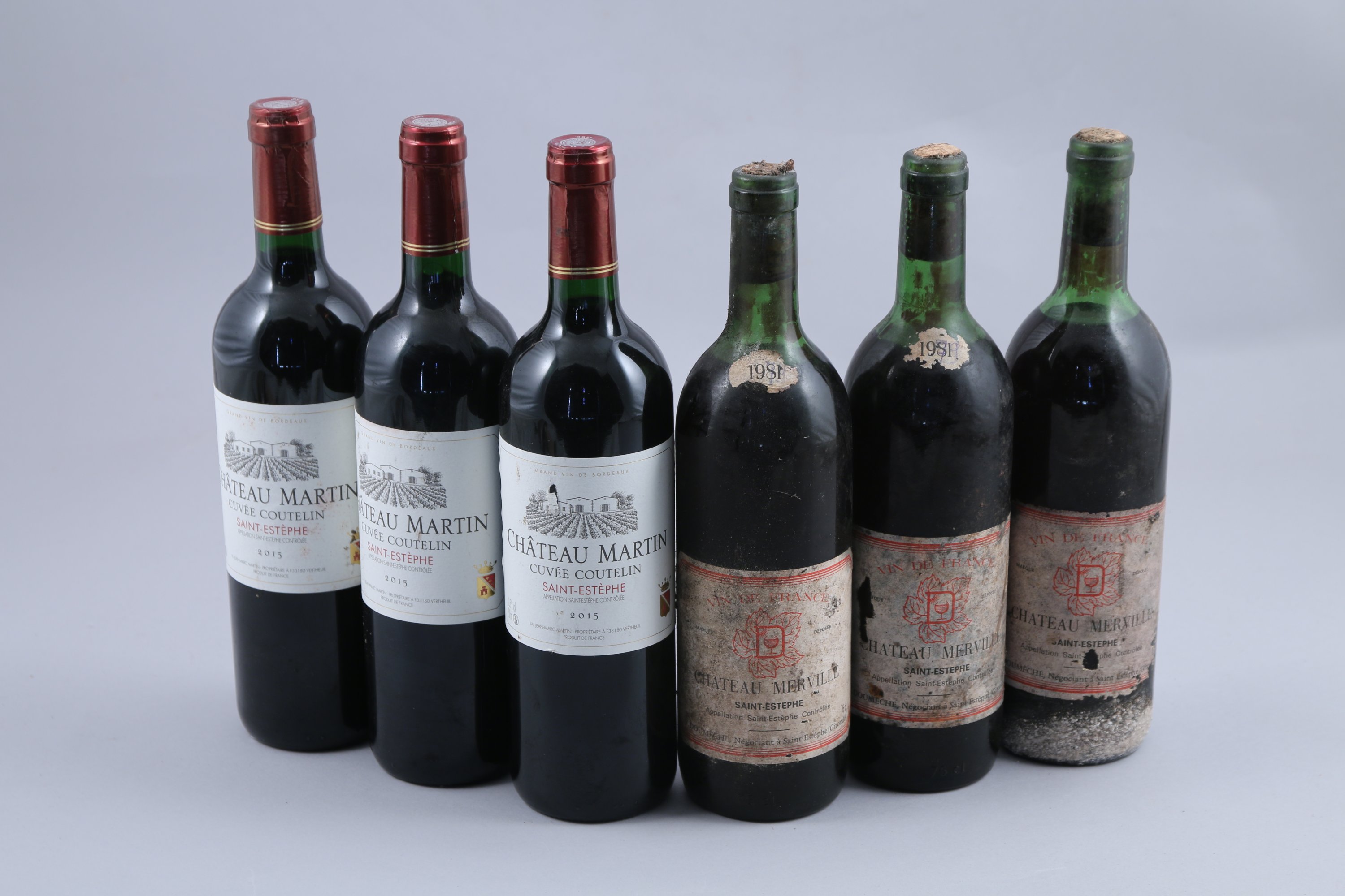 JOINT: SAINT-ESTÈPHE. Château Martin, Cuvée Coutelin, 2015. 3 bouteilles. (N, étiquettes déchirées)