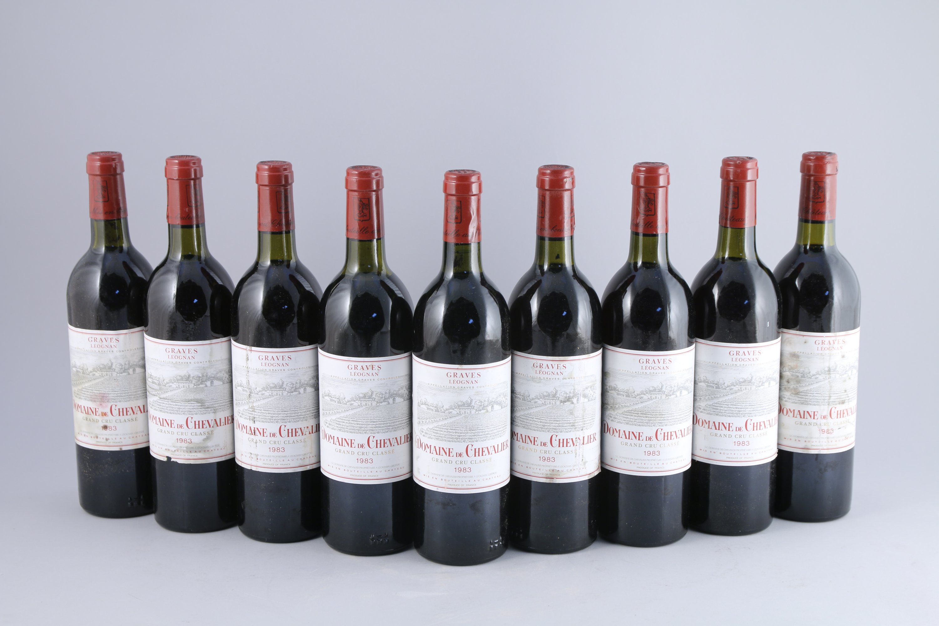 GRAVES LÉOGNAN. Domaine de Chevalier, GCC, 1983. 9 bouteilles (TLB, étiquettes tachées).