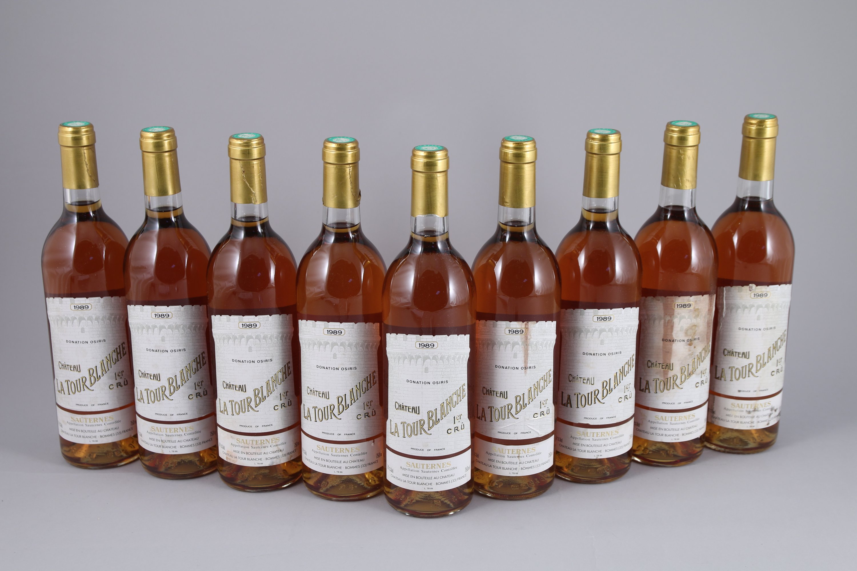 SAUTERNES. Château La Tour Blanche, 1er Cru, 1989. 9 bouteilles. (N à BG, 3 étiquettes abimées).