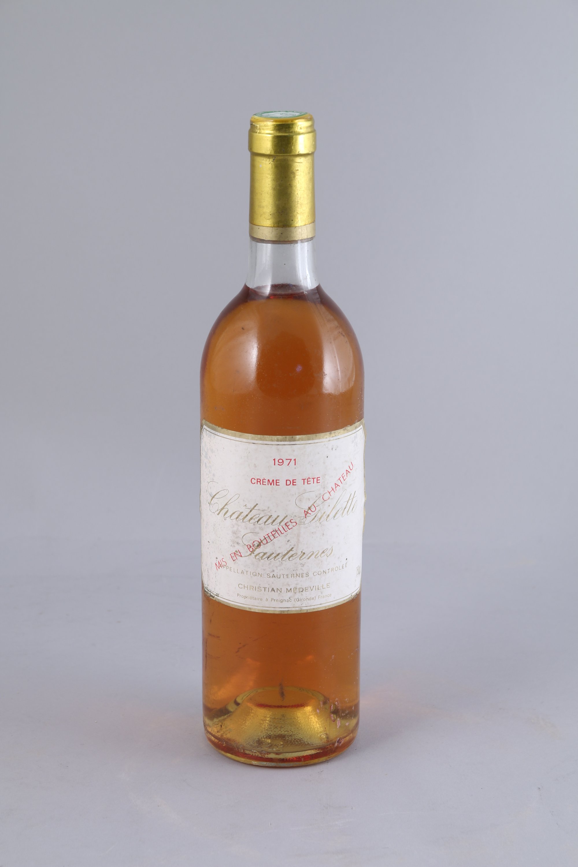 SAUTERNES. Château Gilette, crème de tête, 1971. 1 bouteille. (TLB, étiquette tachée).