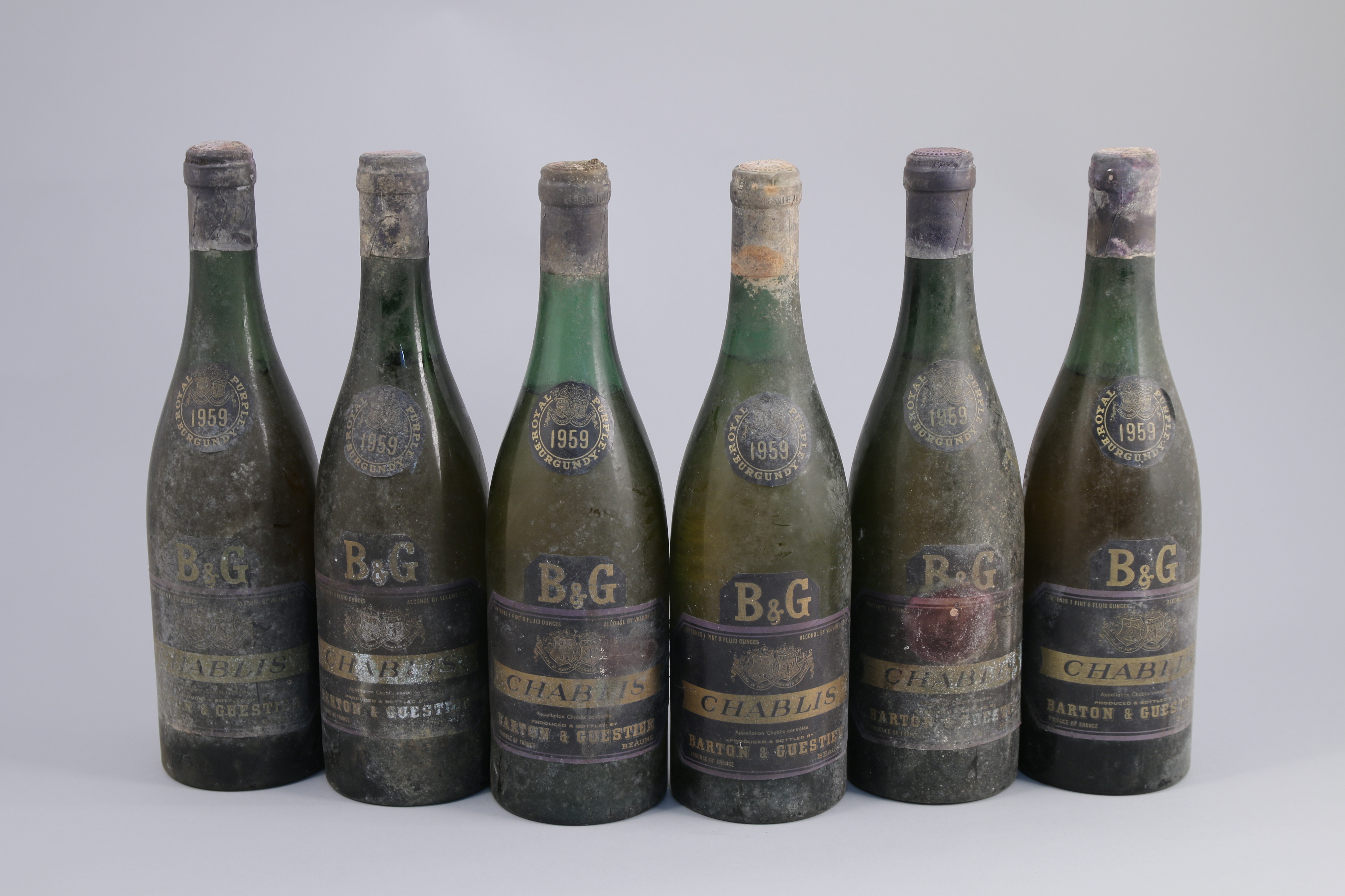BEAUNE. Barton & Guestier, Chablis, 1959. 6 bouteilles. (ME, étiquettes tachées).