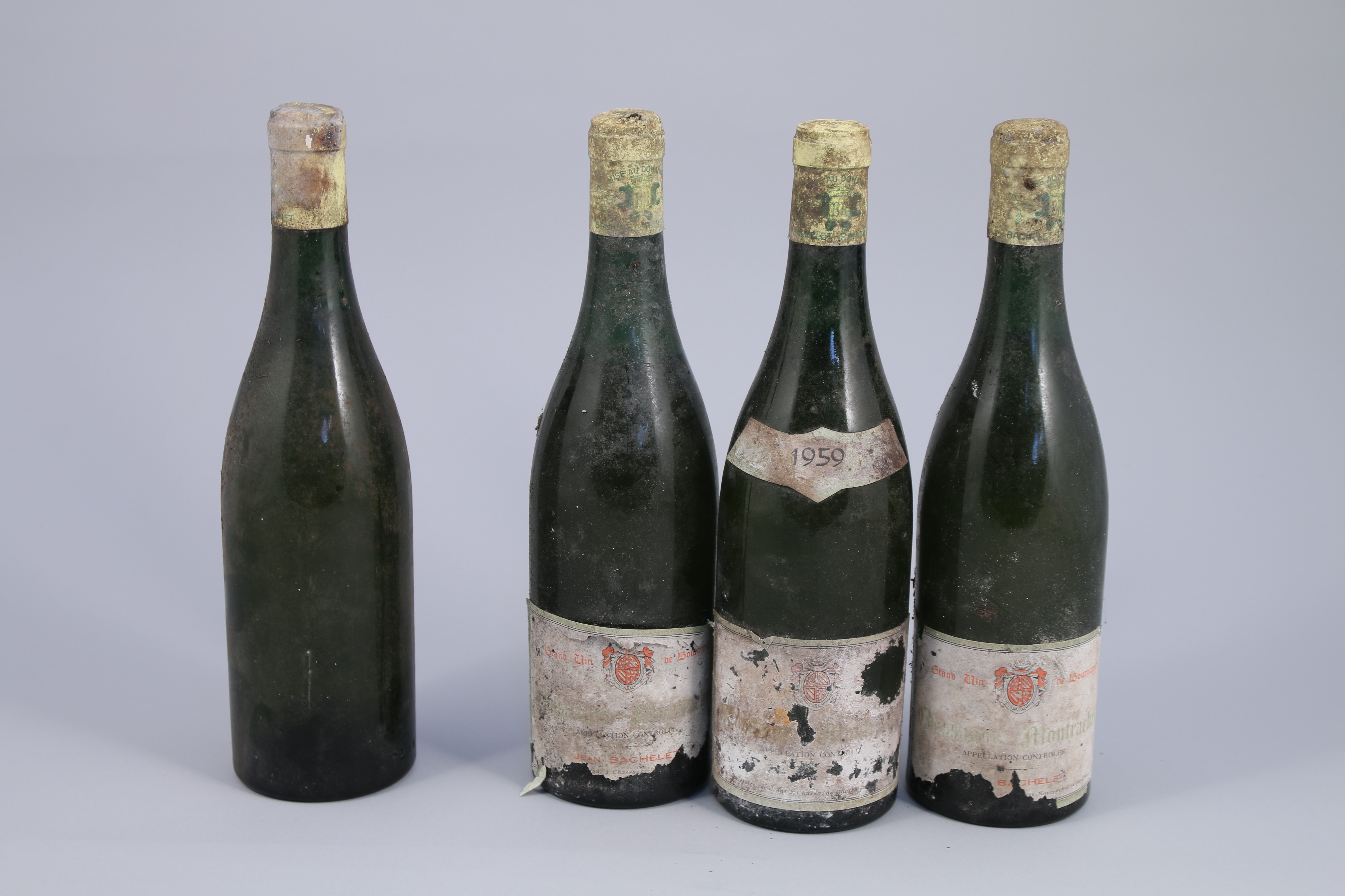 CHASSAGNE-MONTRACHET. Blanc, Jean Bachelet, 3 bouteilles l'une millésimé 1959 (ME, étiquettes tachées et déchirées)