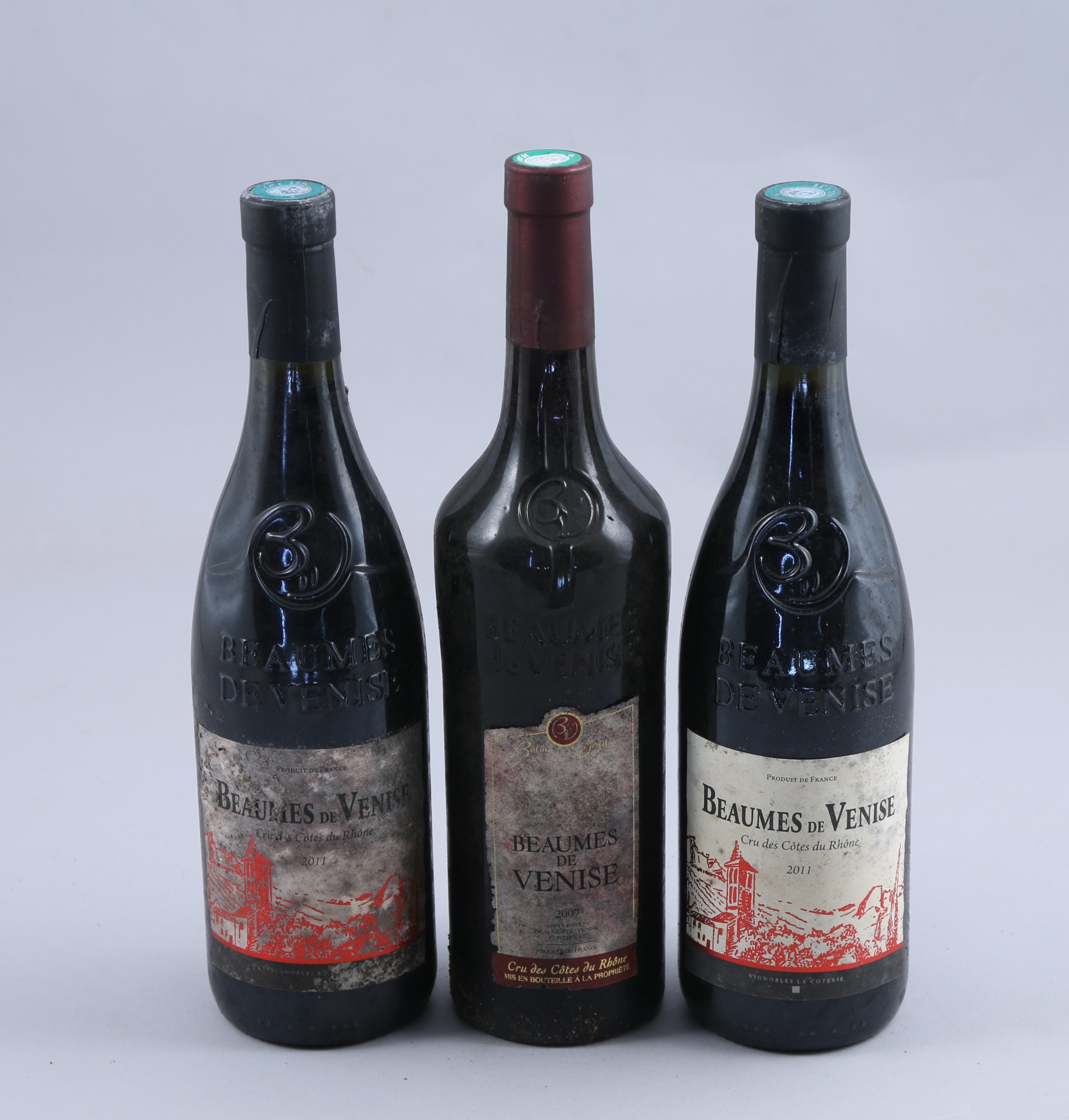 BEAUMES DE VENISE. 2011 et 2007. 3 bouteilles. (N, étiquettes très tachées)