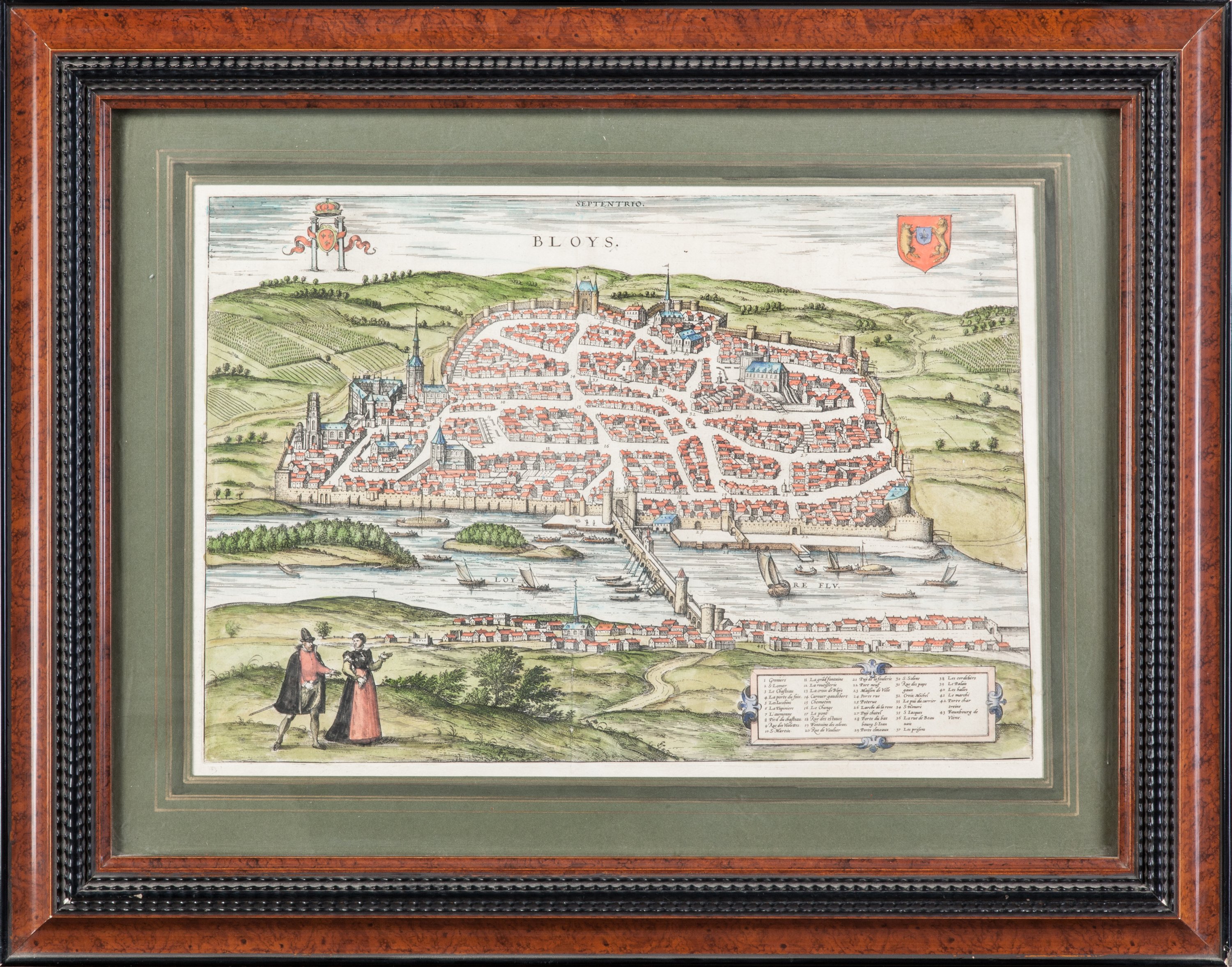 - PLAN DE BLOYS. Gravure aquarellée extraite de l'ouvrage de Jann Jansson, Theatrum Exhibens. Celebriores Galliae et Helvetiae Urbes, Amsterdam, 1657. 30,5 x 44 cm.