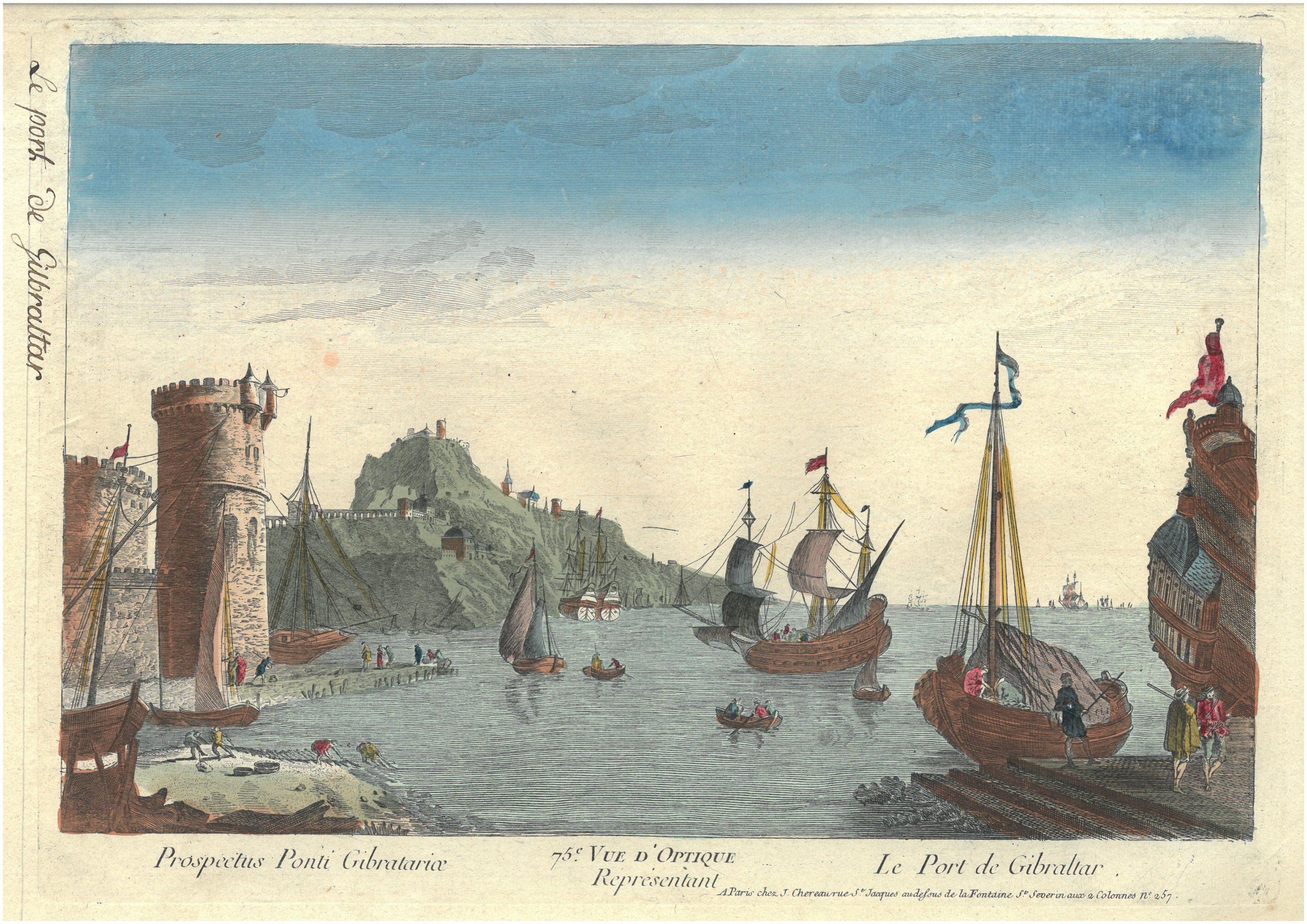 Les vues d'optiques témoignent d'une vogue des images en perspective, montrées dans les salons dès la fin du XVIIIe siècle et au début du XIXe siècle. Ce lot présente des vues de villes d'Espagne (Séville, Bilbao). On peut aussi admirer une vue de la Maison du Plaisance du Grand Mogol à Dély, ainsi qu'une scène de festin à Tiflis donné par le grand vizir. Une vue de la ville de Jérusalem porte la légende suivante: "Jérusalem, ville capitale de la Palestine sous David et Salomon, et si célèbre par son Temple et les magifiques ouvrages que ses deux Princes firent bâtir et par les Miracles qui s'y firent opérés. Elle est aujourd'huy sous la domination des Turcs, il y a un couvent de Cordeliers qui paye Tribut au Grand Seigneur."