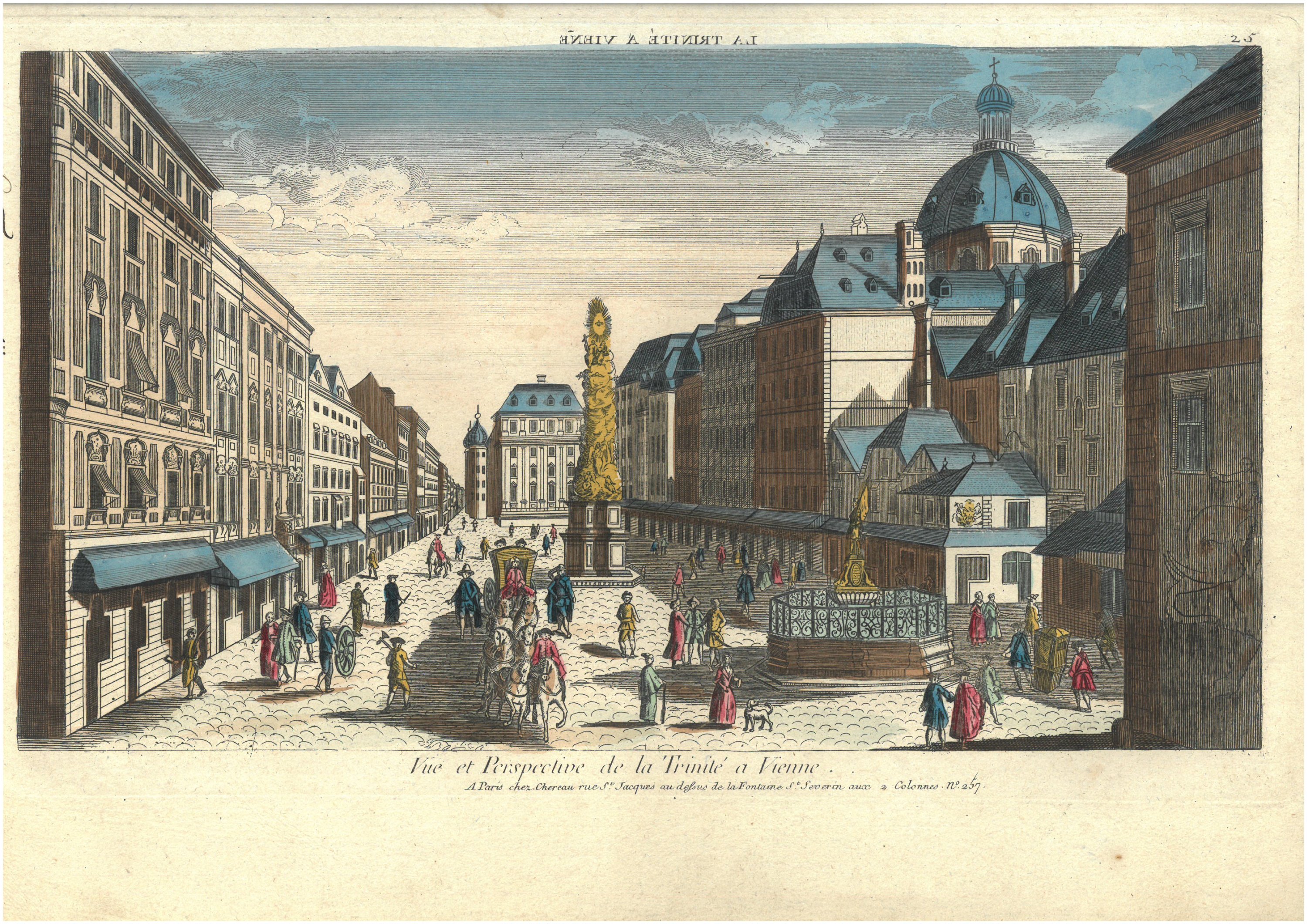 Les vues d'optiques témoignent d'une vogue des images en perspective, montrées dans les salons dès la fin du XVIIIe siècle et au début du XIXe siècle. Ce lot présente des ves de Vienne, Moskov (Moscou), Stockholm, Berlin.