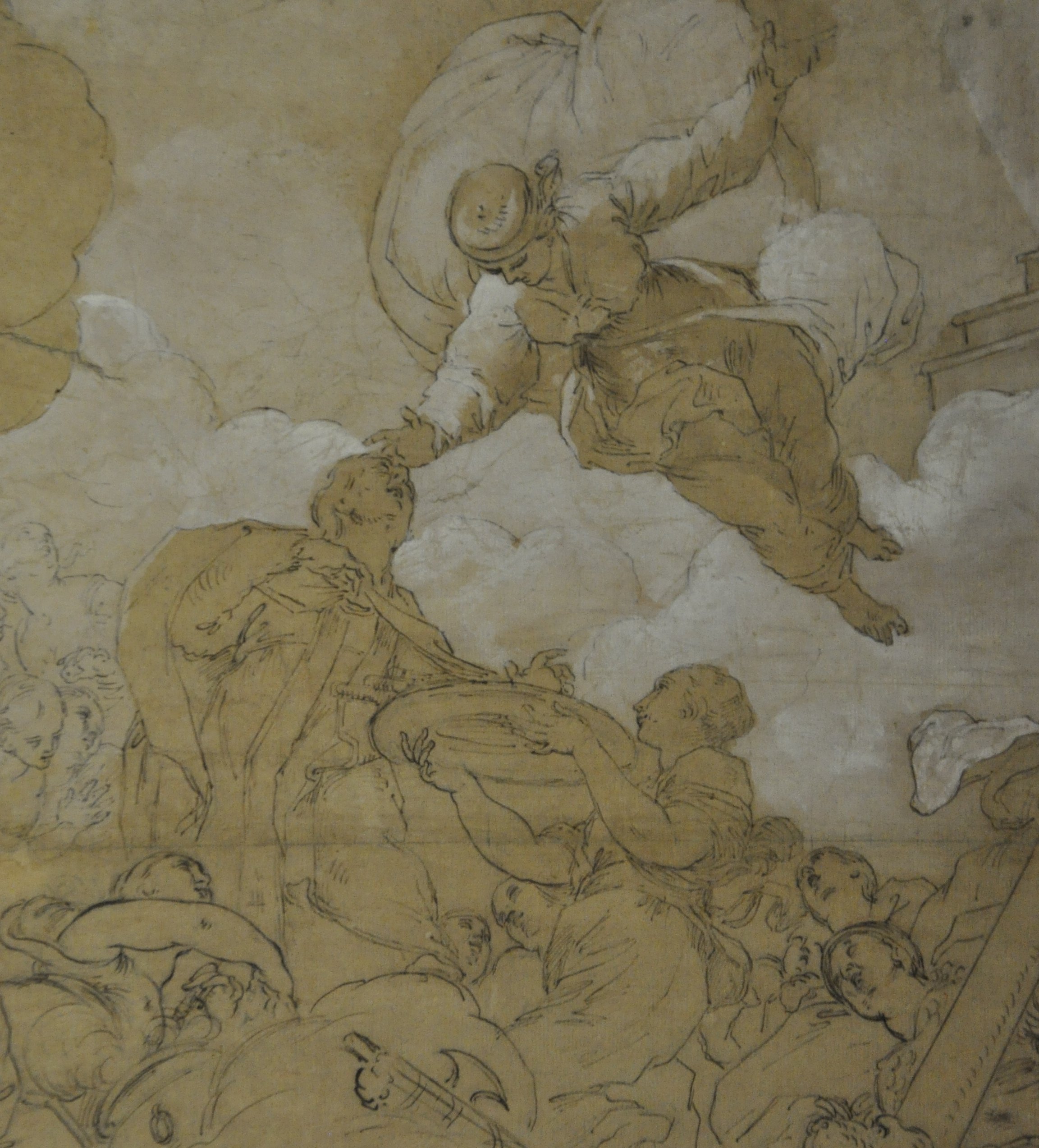 Notre dessin peut être mis en relation avec la fresque du même sujet ornant le plafond de la salle de l'apothéose de Martin V au Palais Colonna à Rome et pour laquelle un autre dessin plus abouti est déjà répertorié (voir R.Maffeis, Benedetto Luti, L'ultimo Maestro, Mandragora, Florence, 2012, n°II.5, p.287-288 ill.)