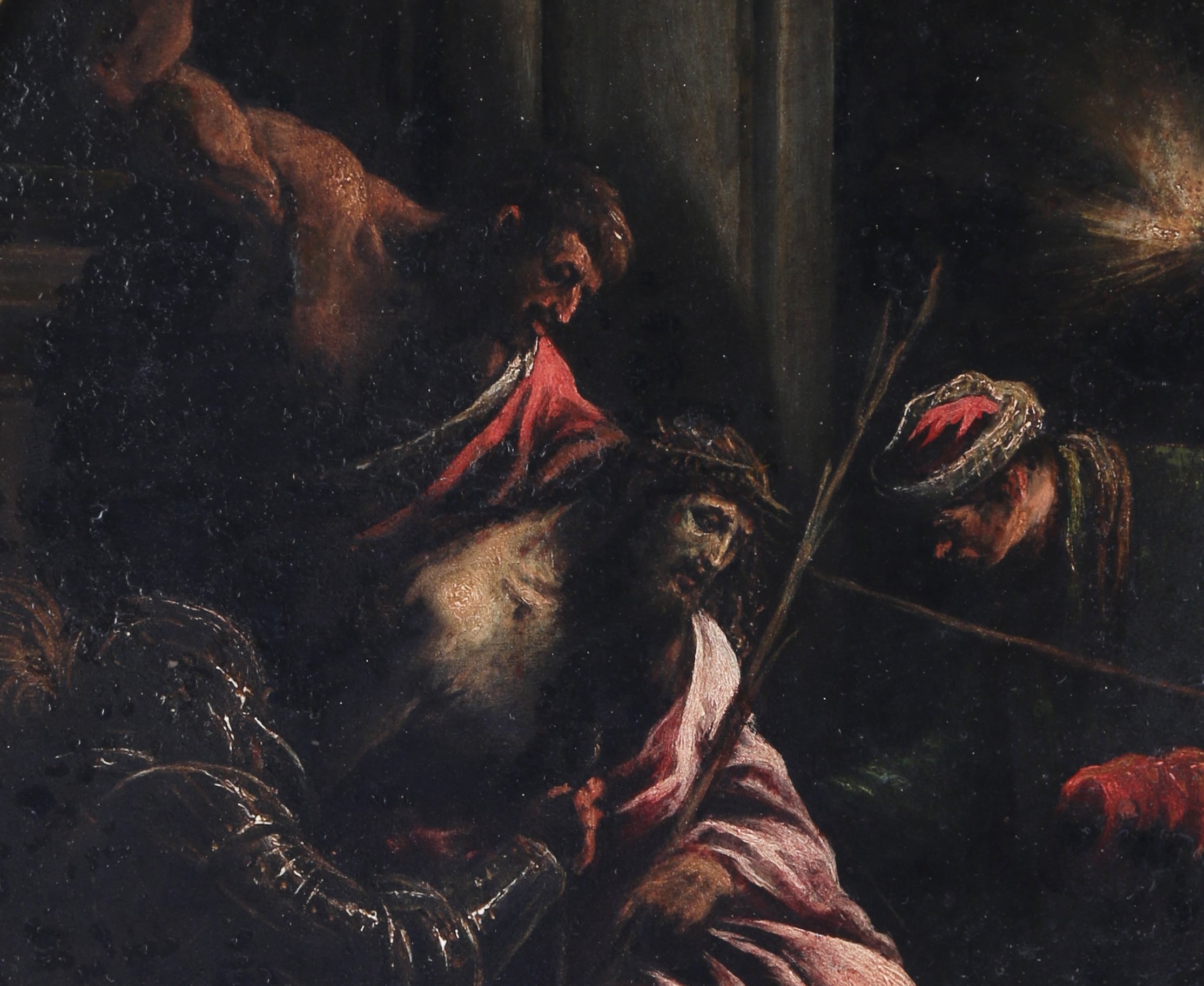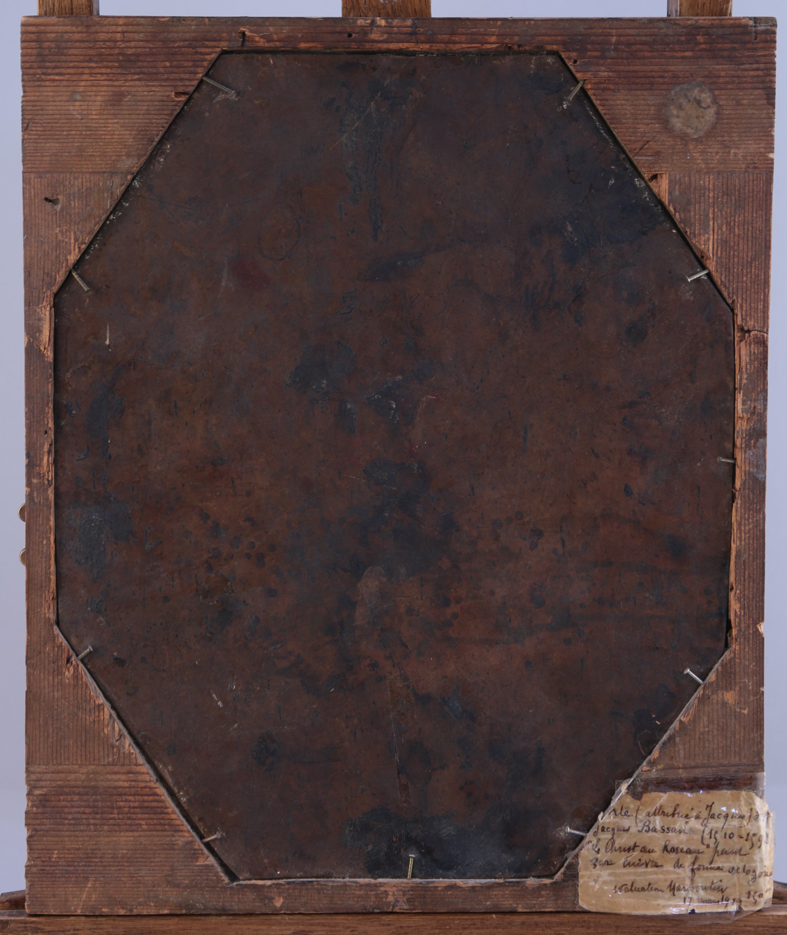 Provenance: collection particulière, Nantes. une étiquette précise au dos que ce cuivre octogonal du Christ au roseau attribué à Jacopo Bassano a été évalué 150 F le 19 mars 1919.