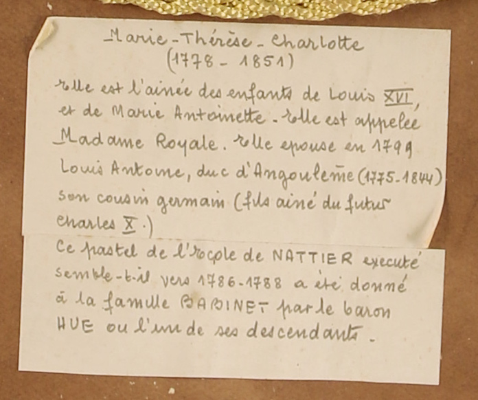 (dépôt de pastel sur la face interne du verre du portrait de garçonnet, fente en partie supérieure du portrait de la jeune fille, en l'état)