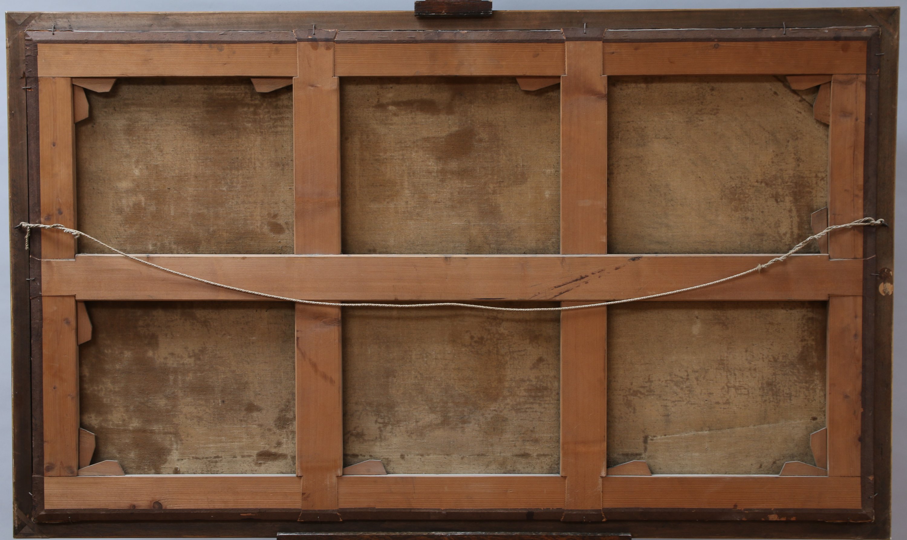 Haut. 87, Larg. 151 cm. (agrandie en haut et sur les quatre côtés, restaurations anciennes)