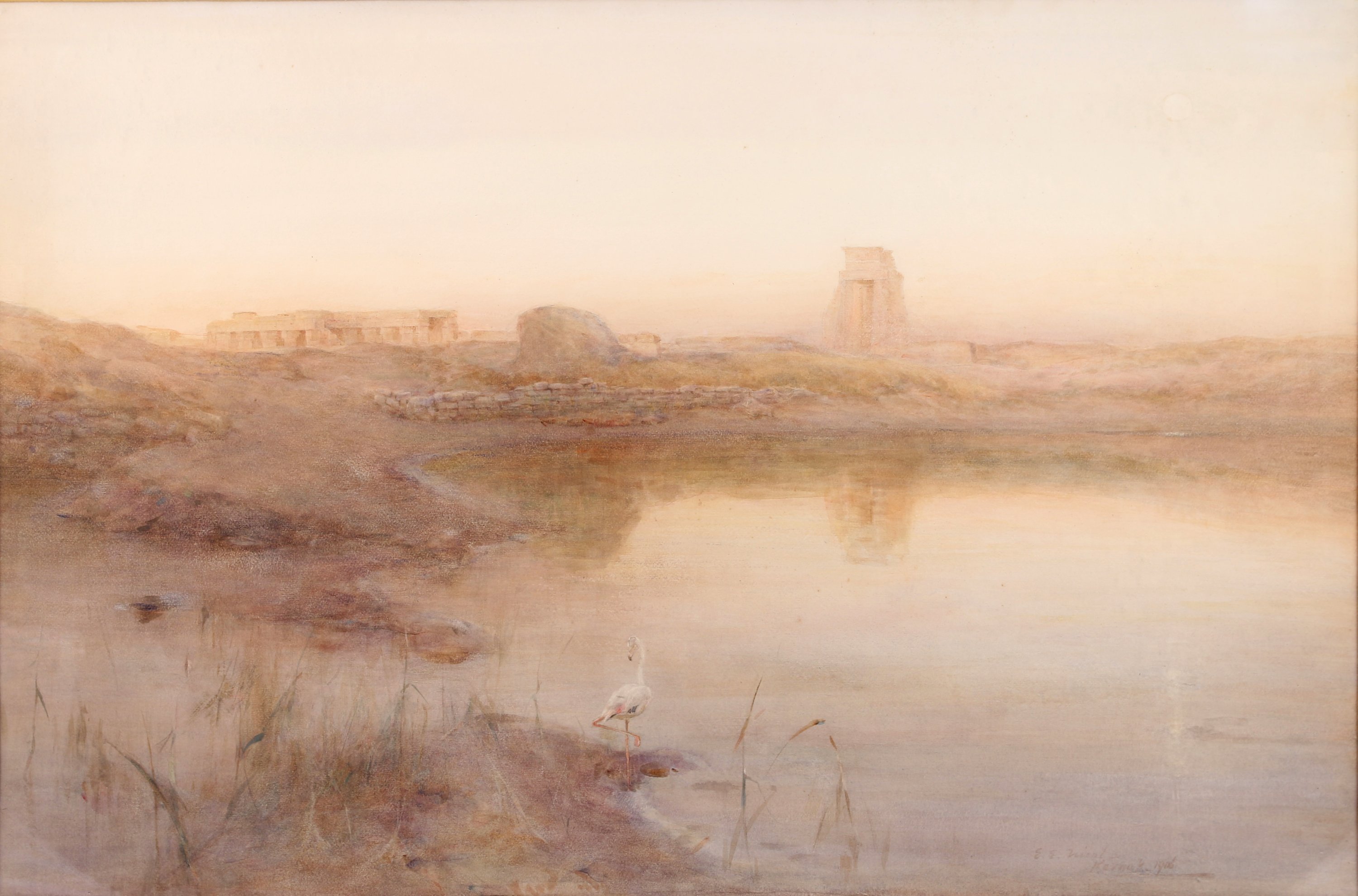 Aquarelle signée, située "Karnak" et datée 1906 en bas à droite.