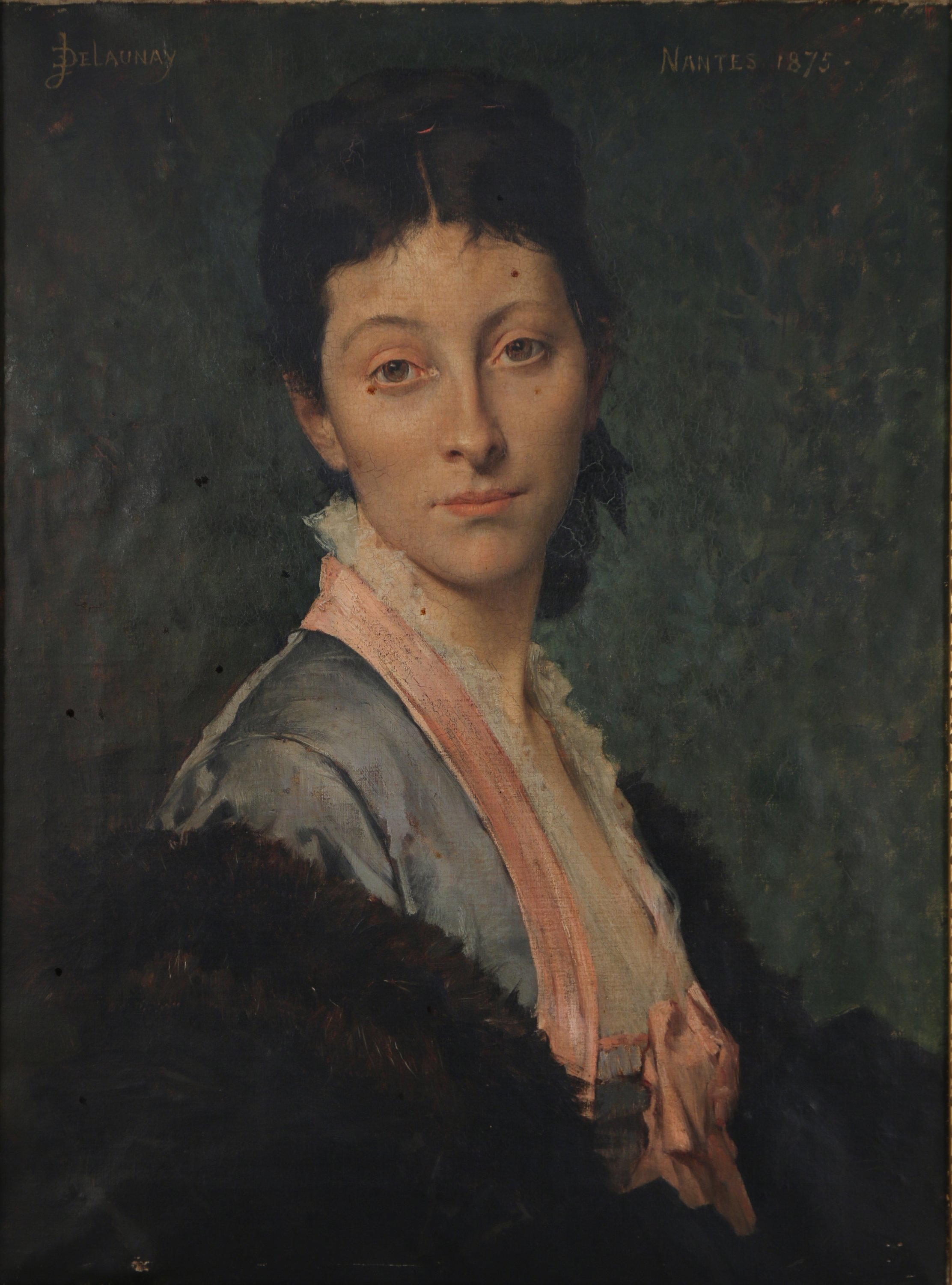 Toile signée en haut à gauche, située "Nantes" et datée 1875 en haut à droite.