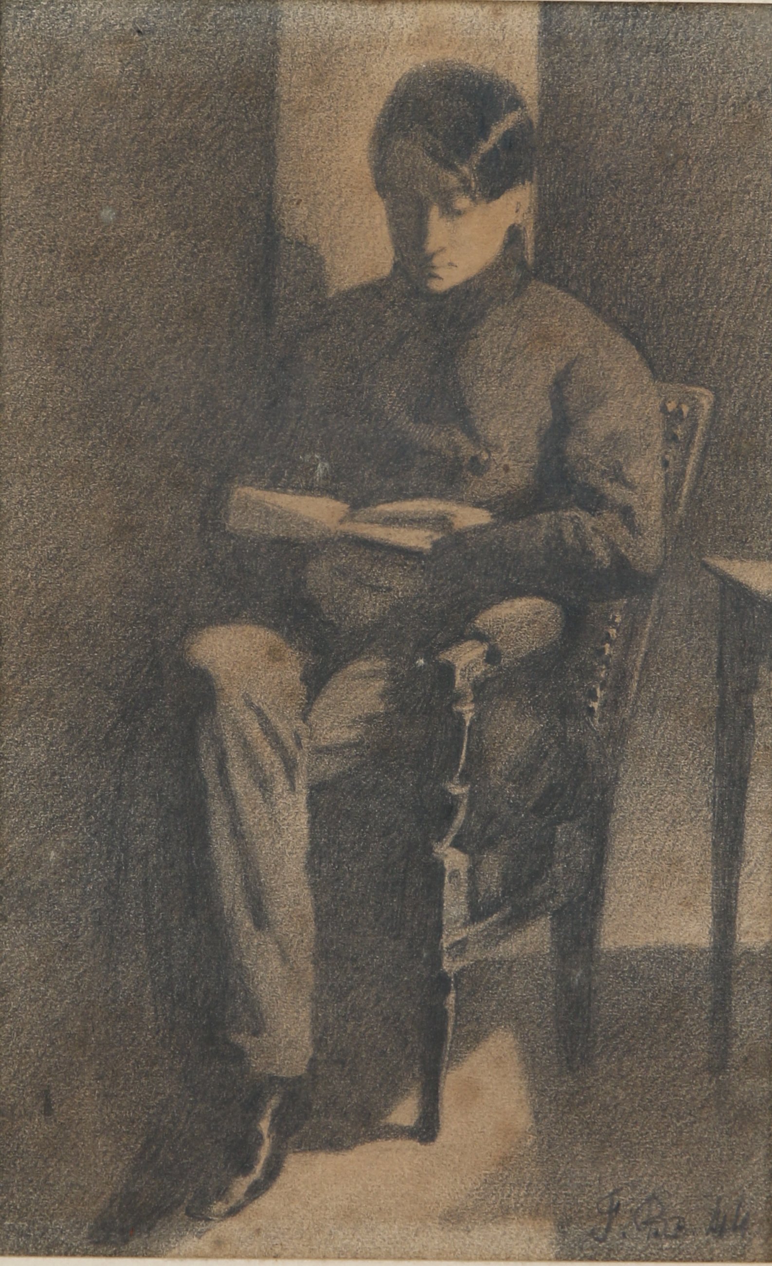 "1850: Le dessin n'est pas abandonné pour autant et les croquis très achevés qu'il trace sur le papier reflètent toujours son attachement aux scènes tirées de la réalité, portraits dessinés sur le vif, femmes dans leur intérieur et dont les silhouettes subtilement ombrées par le fusain se détachent sur des fonds neutres comme l'exige l'enseignement des maîtres hollandais." Gabriel P. Weisberg, "Bonvin", Les Maîtres du XIXe siècle, éd. Geoffroy-Dechaume, 1979, p. 45.