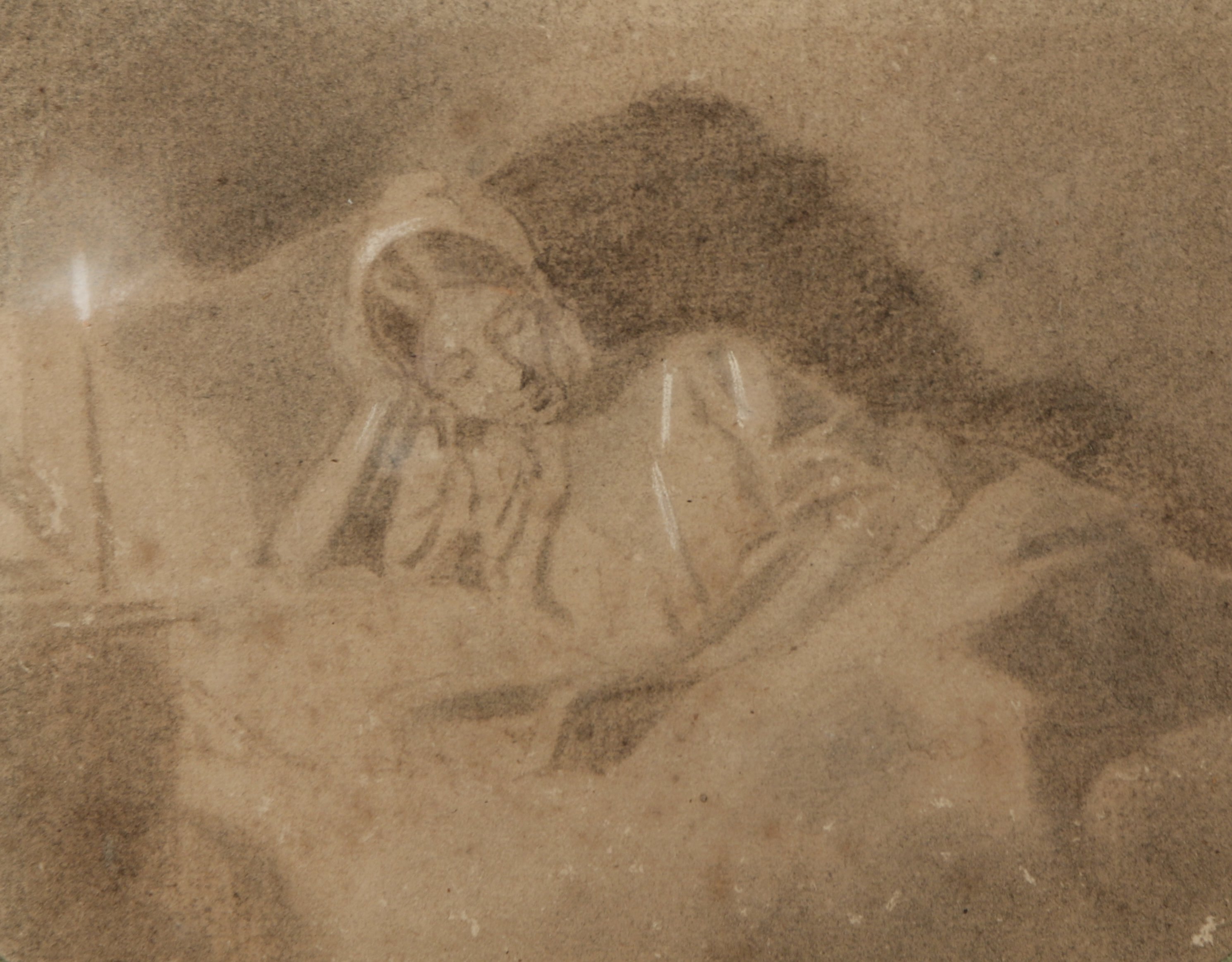 Esquisse sur papier avec des réhauts de craie blanche.
