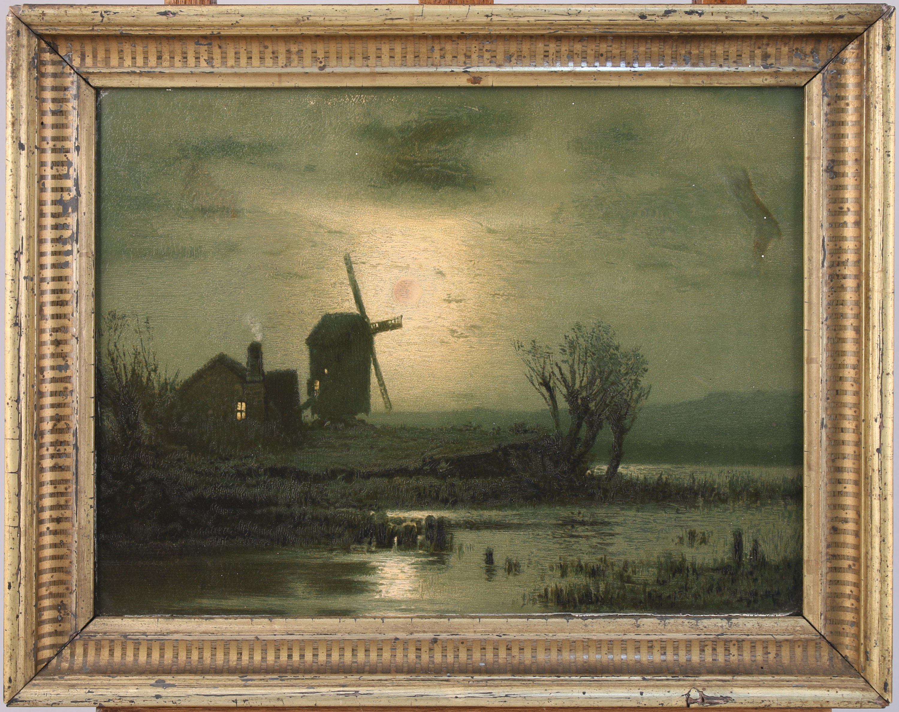 - Paysage nocturne au moulin dans le goût de Ruisdael. 33 x 25,5 cm.
